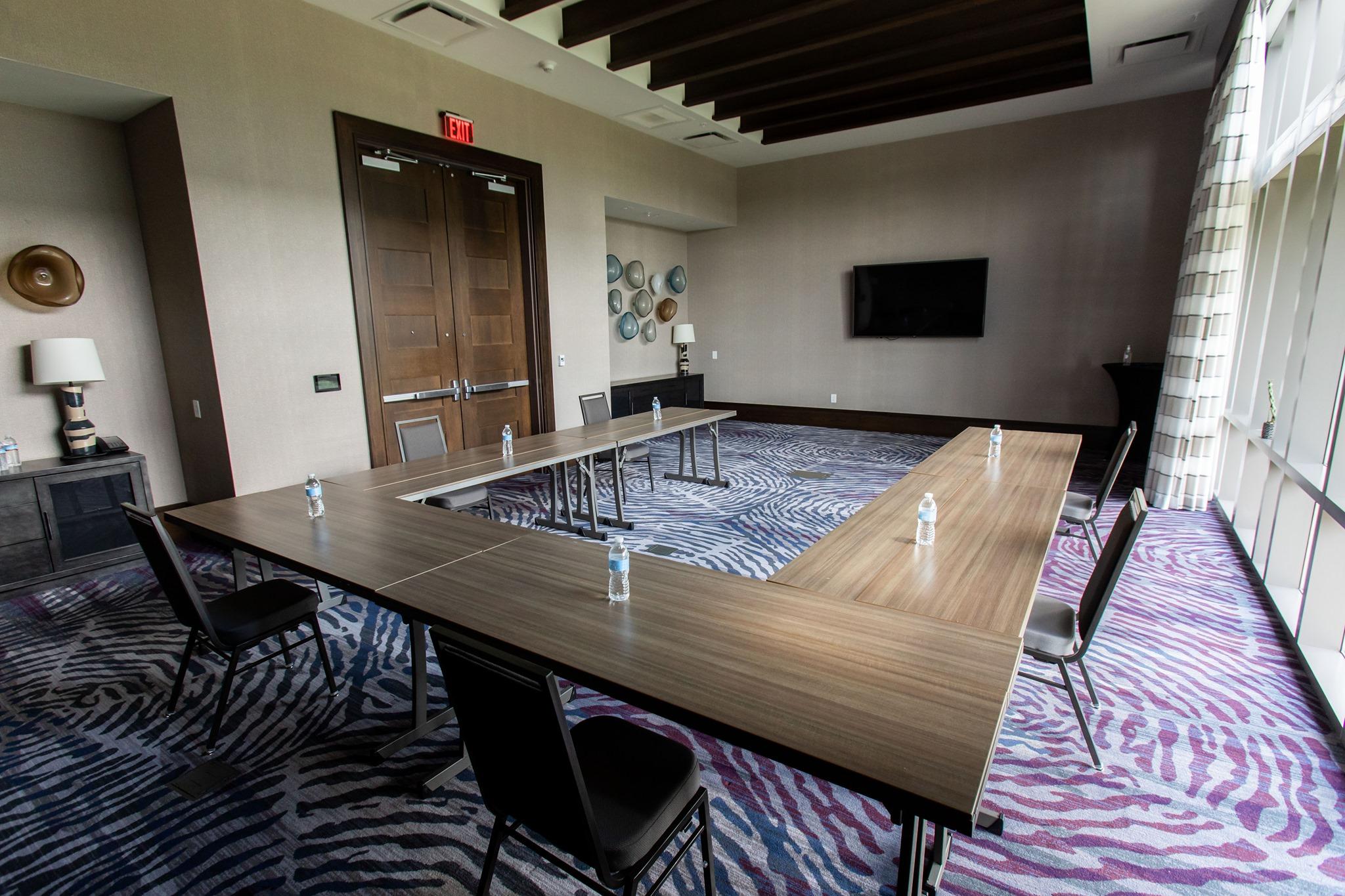 This space features floor to ceiling windows that overlook our beautiful pond.