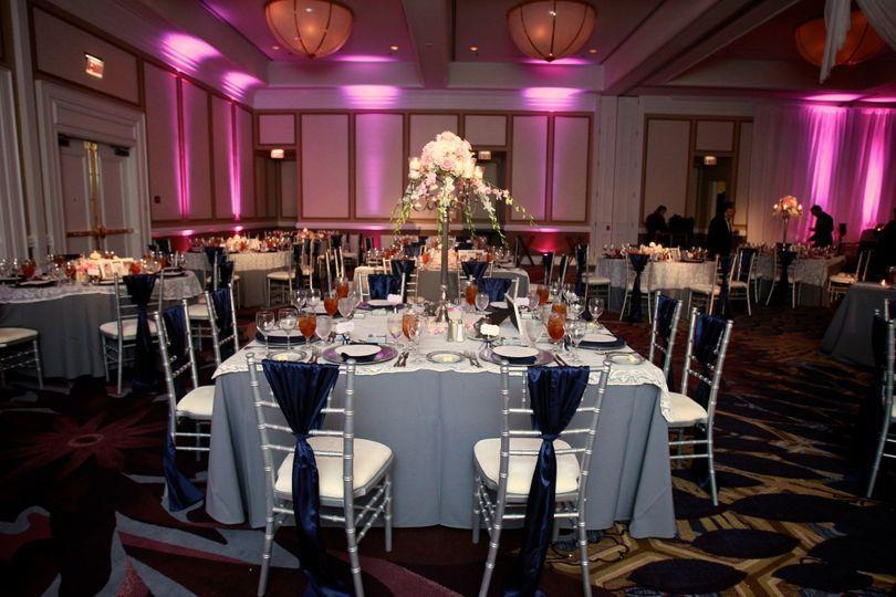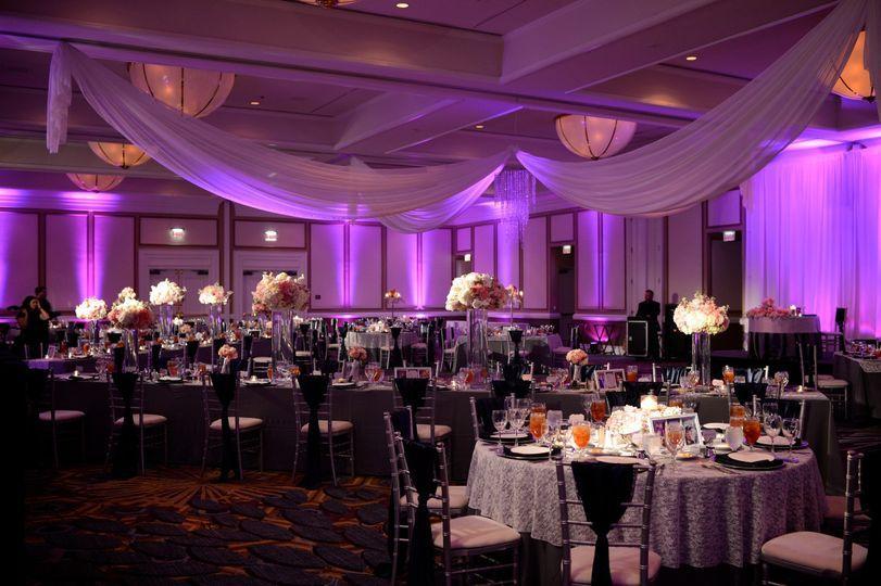 Renaissance Dallas North Hotel is an elegant wedding venue in Dallas, Texas. Located less than 10 minutes from the Las Colinas Business District, this hotel makes for a lively, upscale setting for couples to enjoy their dream day. Facilities and Capacity Renaissance Dallas North Hotel has 7 meeting rooms to offer and can host anything from small gatherings to extravagant receptions. One of their largest spaces is the Park West Ballroom, a versatile setting that can host banquets with up to 350 guests. Its modern, minimalist design, custom uplighting, and contemporary chandeliers can accommodate a variety of wedding themes. The Park West Ballroom can also be divided into smaller meeting rooms for a more intimate atmosphere. Also available is the Trinity Ballroom, which has over 2,500 square feet of space to host up to 200 friends and family. An elegant foyer is present just outside the ballroom for a stylish cocktail hour. The hotel also has over 300 guest rooms.