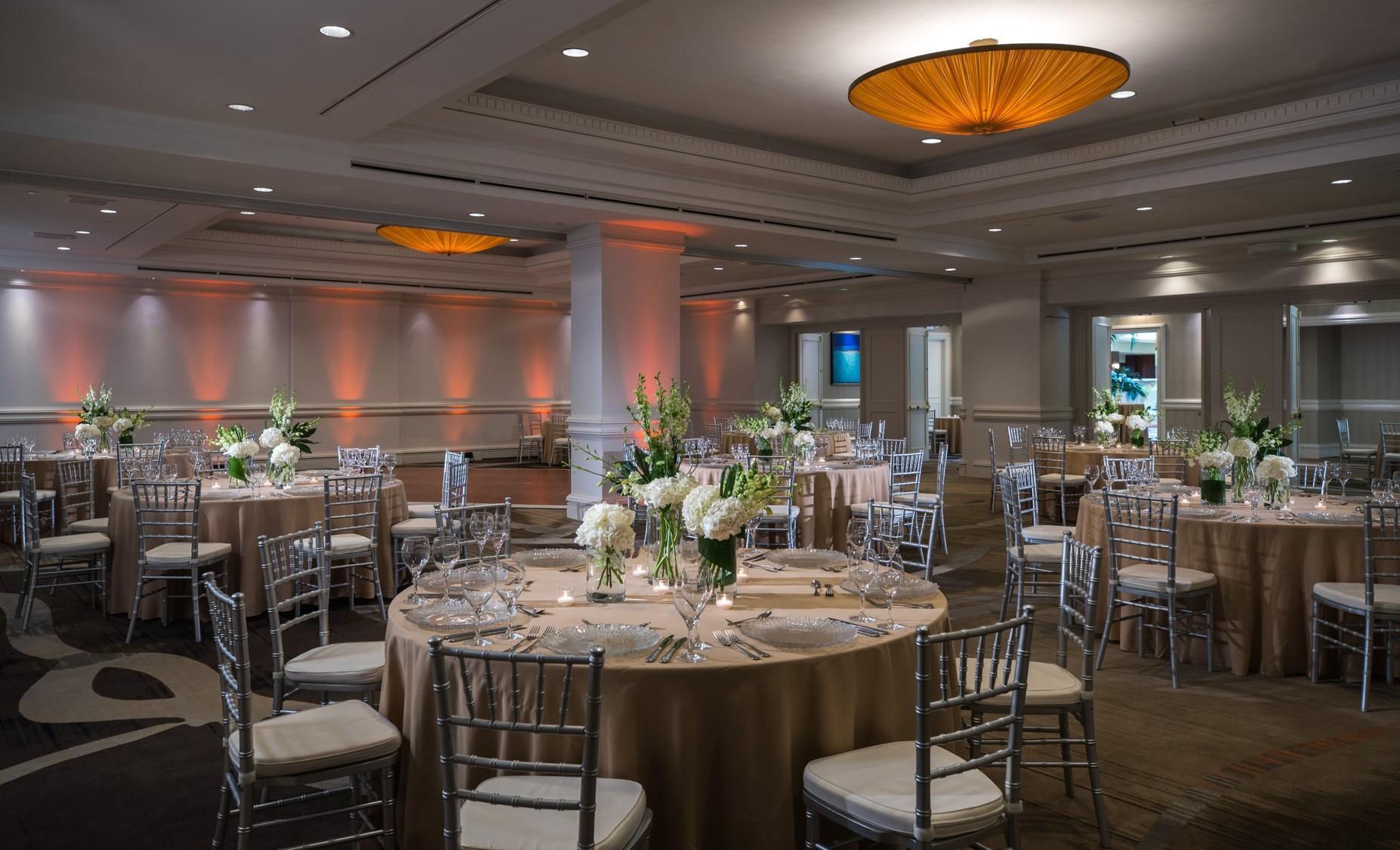 Coral Ballroom breaks into three sections, has a private foyer and is the closest event space to our North self-parking and front entrance. It is conveniently located close to our outdoor spaces as well.