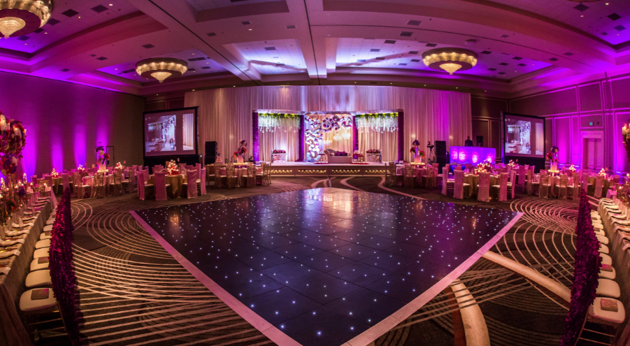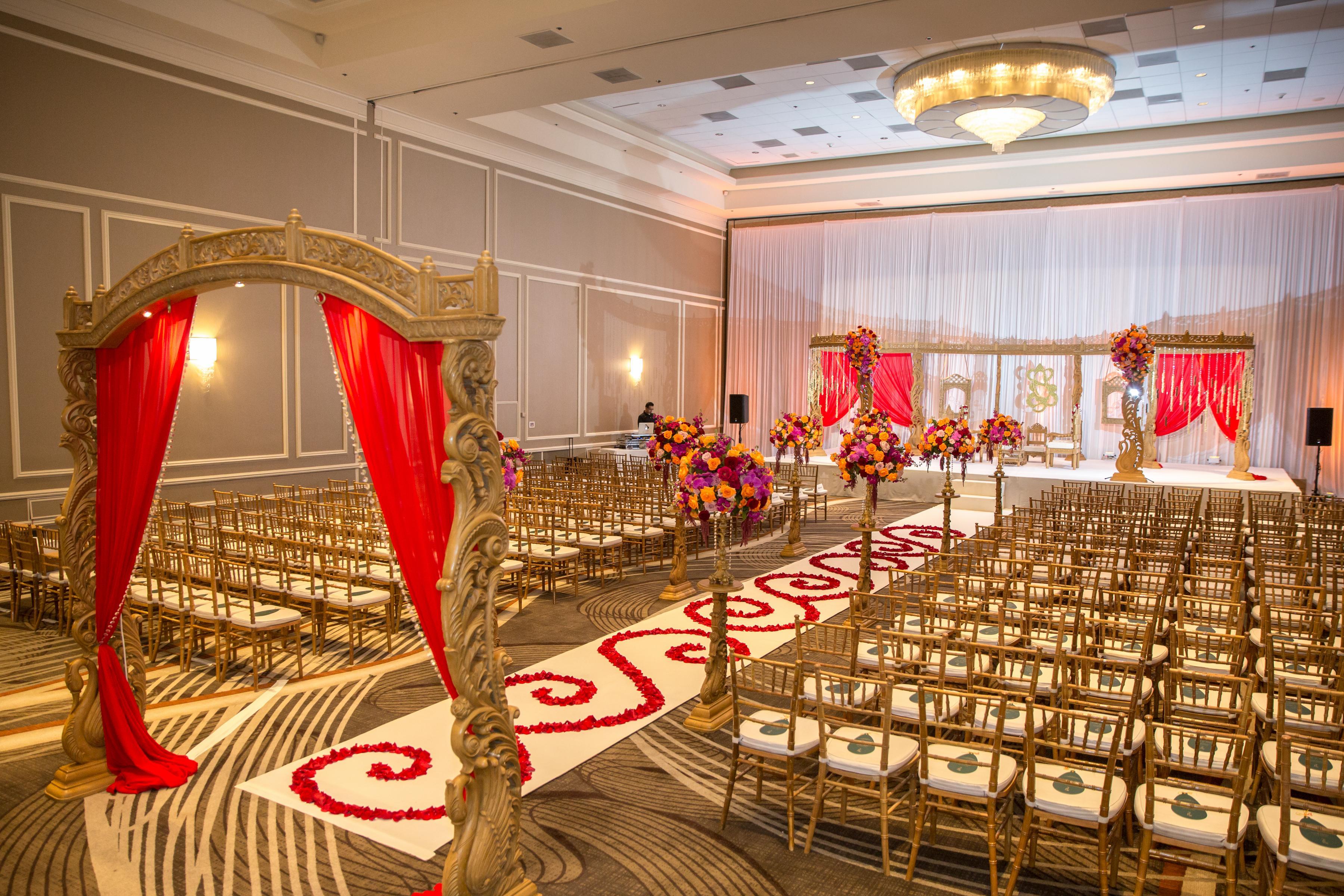 Choose from the R Lawn which provides secluded outdoor function space ideal for large groups, Pool Lawn that is a tropical oasis that provides for the perfect outdoor experience, or the Pool Terrace where you can enjoy a breath of fresh air with a fountain and 2 fire pits. The Pool Terrace also connects to our Oceans Lot & Porte Cochere which is the ideal space for a Baraat.