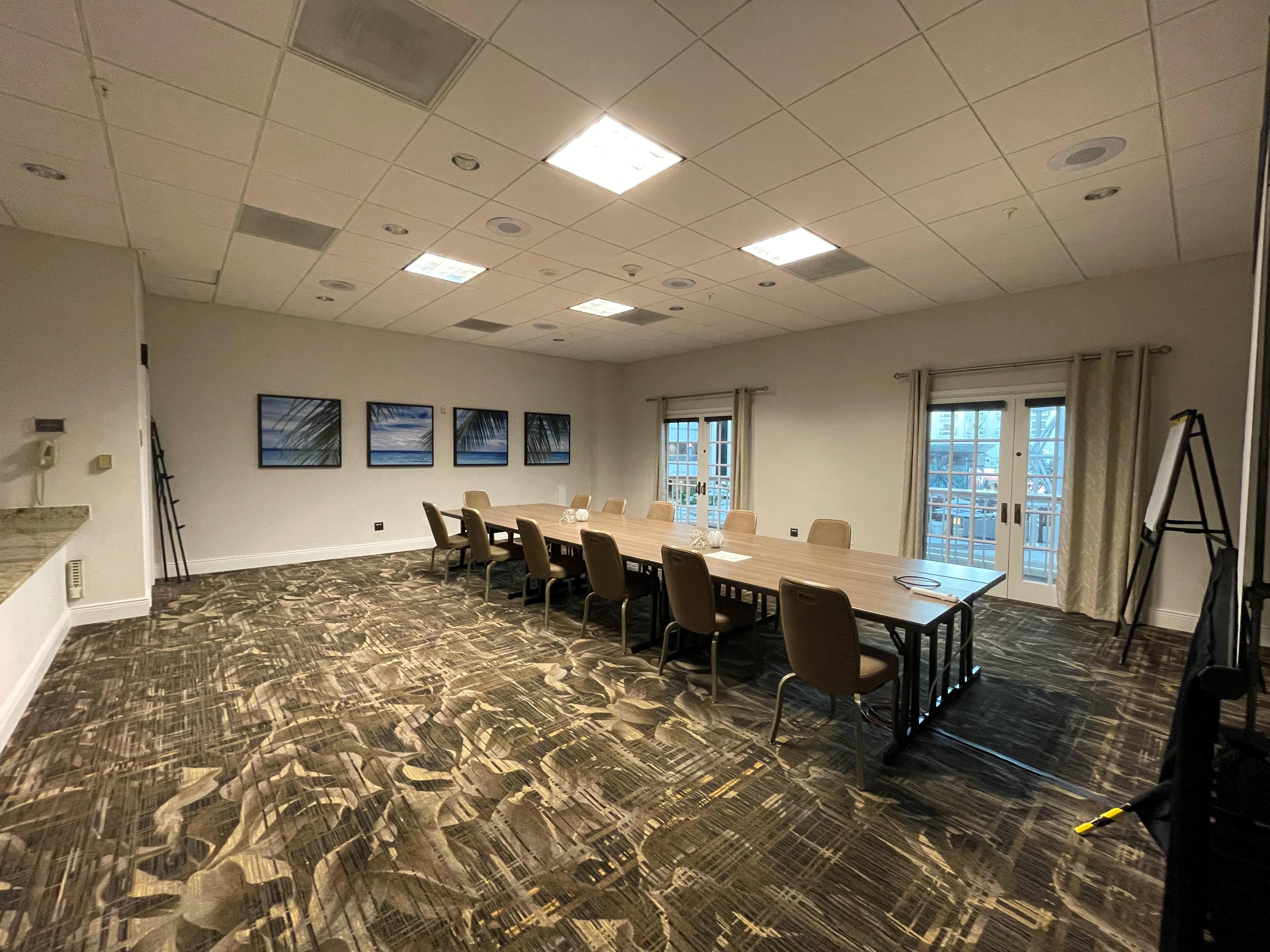 Canaveral & Biscayne are twin spaces that have a gorgeous backdrop of our outdoor green space with large windows.