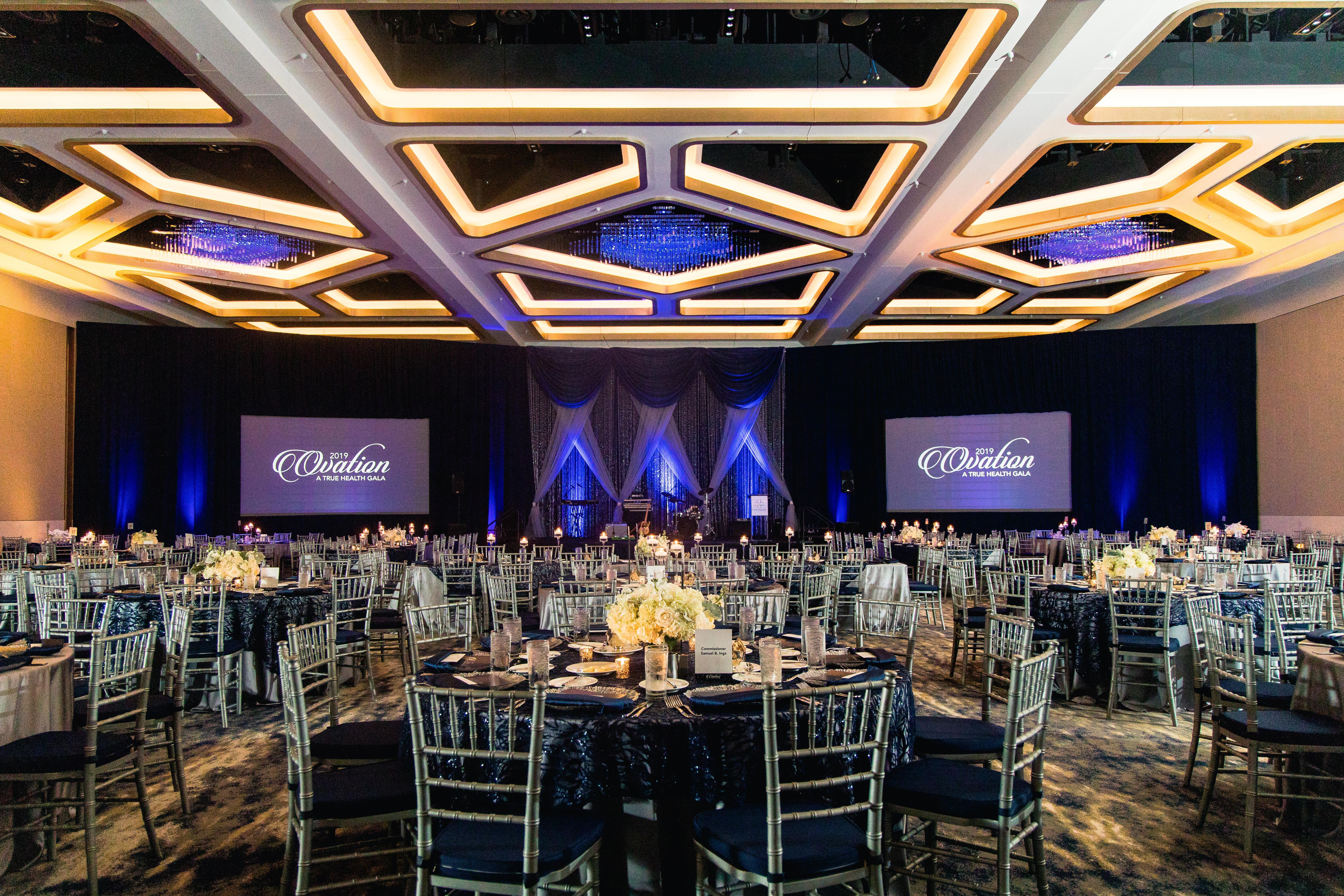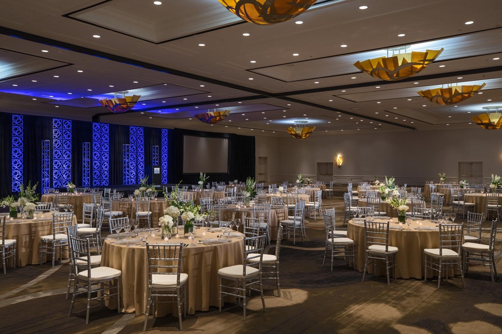The Oceans Ballroom offers incredible flexibility and many distinctive features including: flexible space configurations, divisible into up to 10 separate spaces, 22 ft. ceilings, customized lighting, sound and temperature features, dozens of rigging points for staging, lighting and shows of all kinds, 13,000 sq. ft. of foyer space with floor to ceiling windows, upholstered and sound-secure air wall systems for maximum sound protection, and adjacent to loading docks for ease of load-in