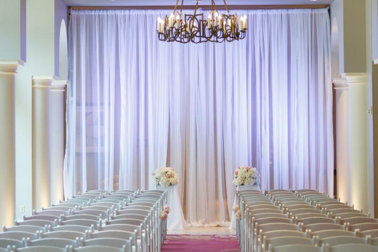 Ideally suited for wedding ceremonies up to 150 guests. Enhanced by natural lighting from floor-to-ceiling arched windows