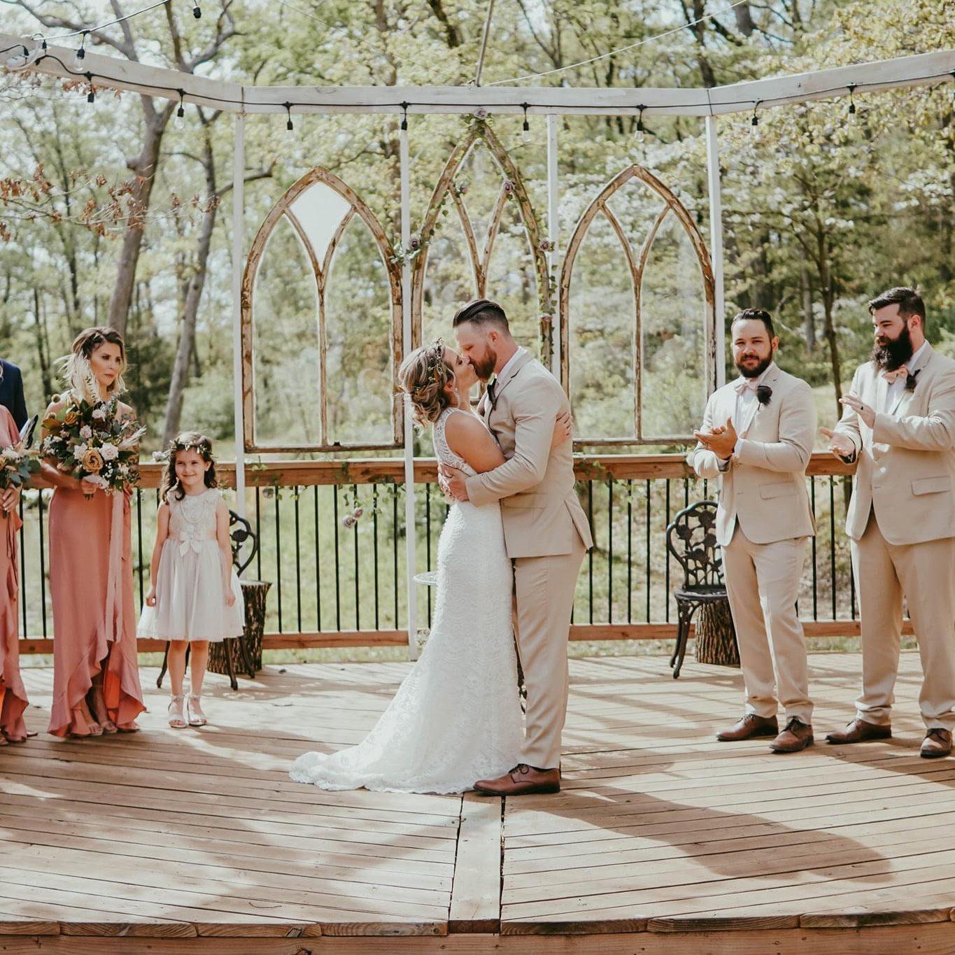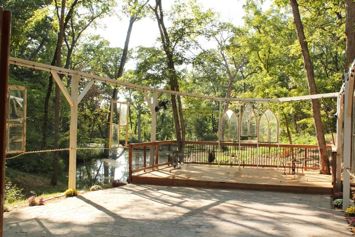 We have just completed our "Wedding in the Woods" wedding venue which is located at the back of our 12 acre property. Beautiful woods surround the wedding space. The venue is nestled in the woods for a truly one of a kind event that makes your guests feel like they are in a secluded setting, yet you are right off of 1-70 and just 45 minutes west of St Louis. We offer an onsite bridal cabin where the bride and her bridesmaids can get ready for the big day. A scenic pond and plenty of trees are the backdrops to the amazing ceremony deck where the bride and groom say their "i dos". Tons of great photo ops. Have your ceremony, reception, or both in this picturesque space designed to be unlike any other around.