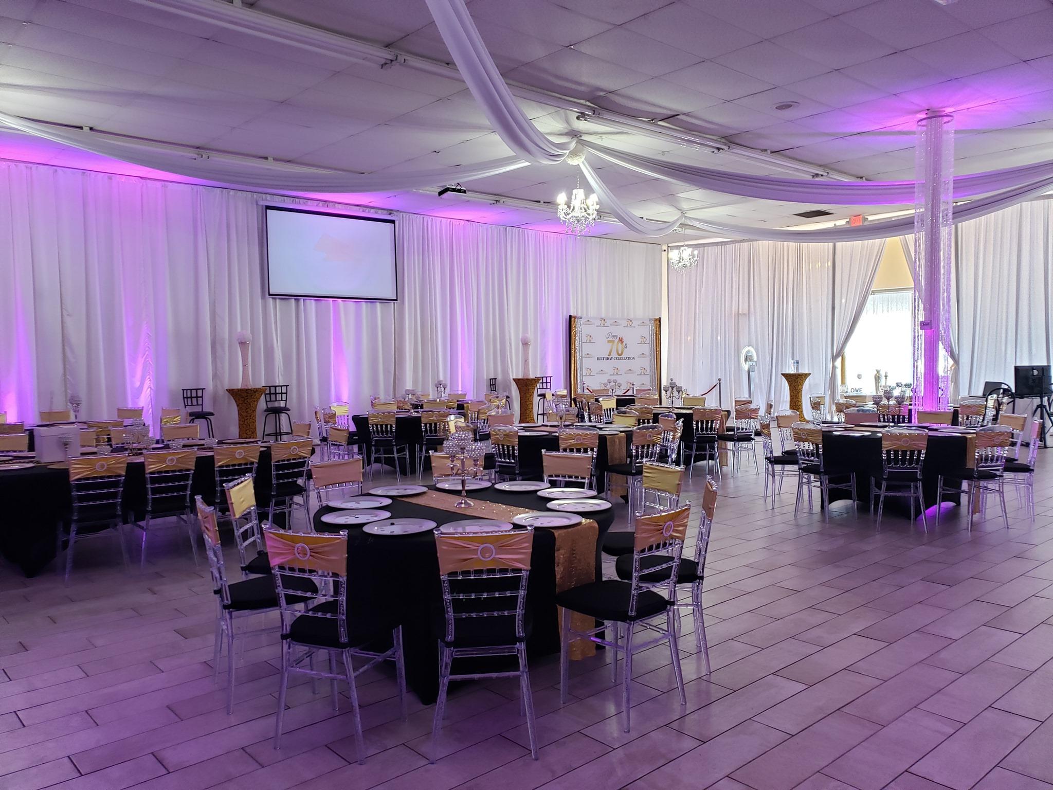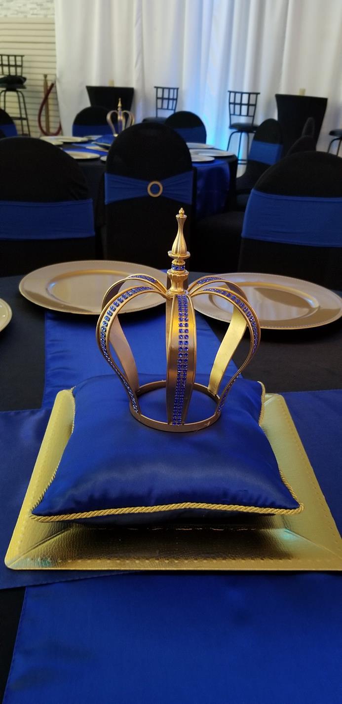 With Royalty Decor Package DJ & Emcee Premium Linens & Napkins Tables & Clear Chivari Chairs Charger Plates Photography Videography Cash Bar Tier 1 Catering Menu ($20pp) Cake Table Uplighting Projector for Slideshow
