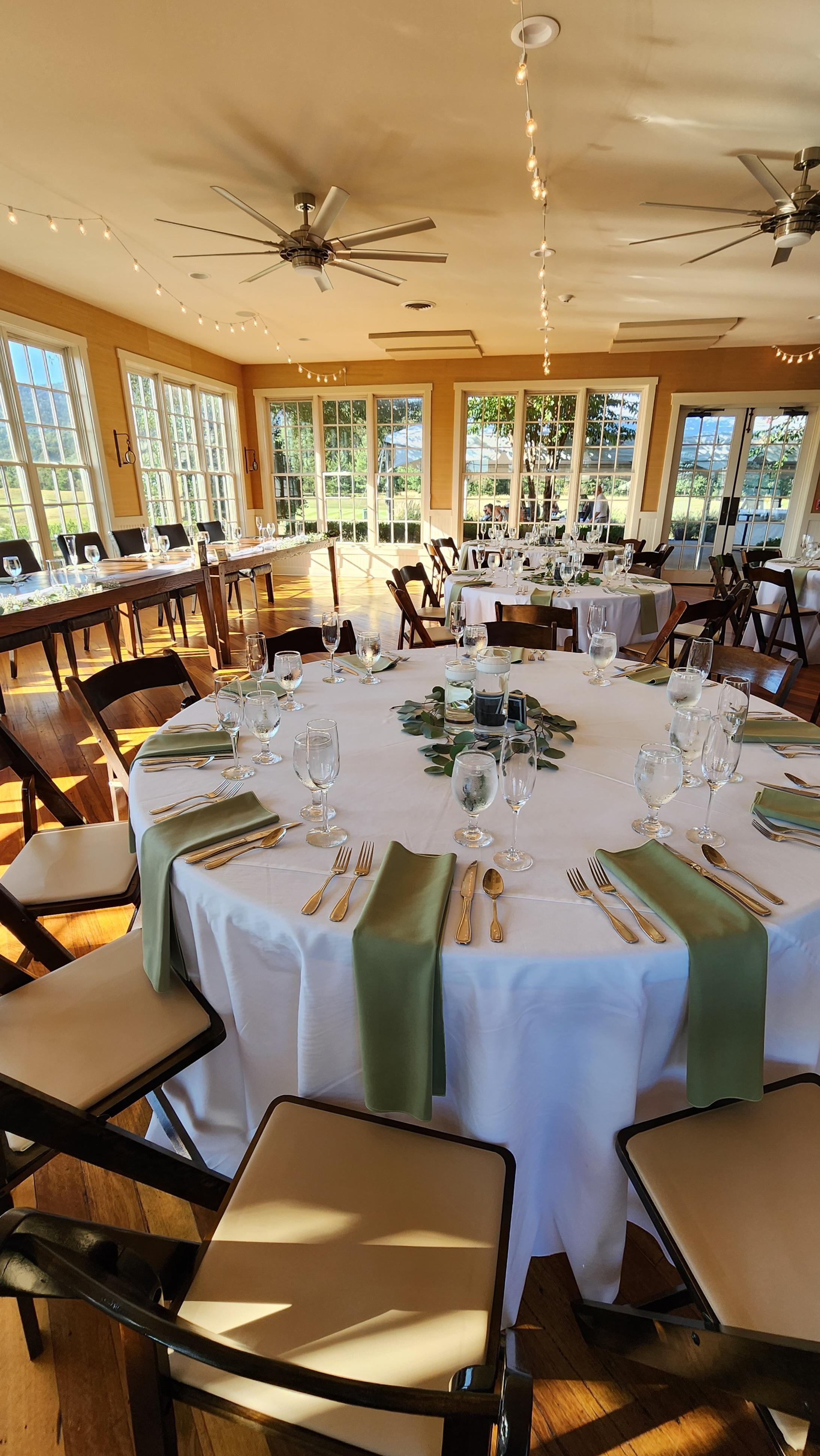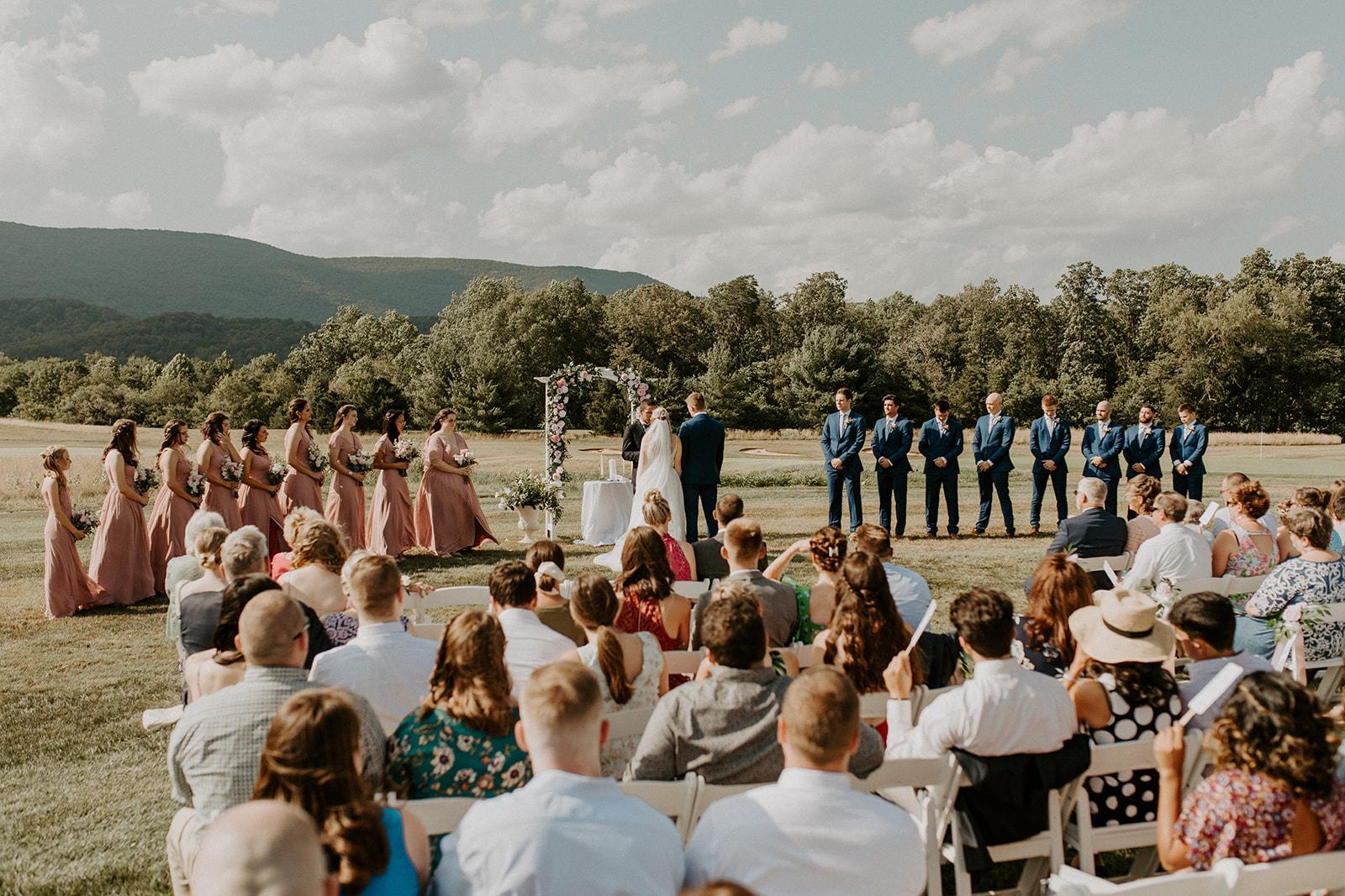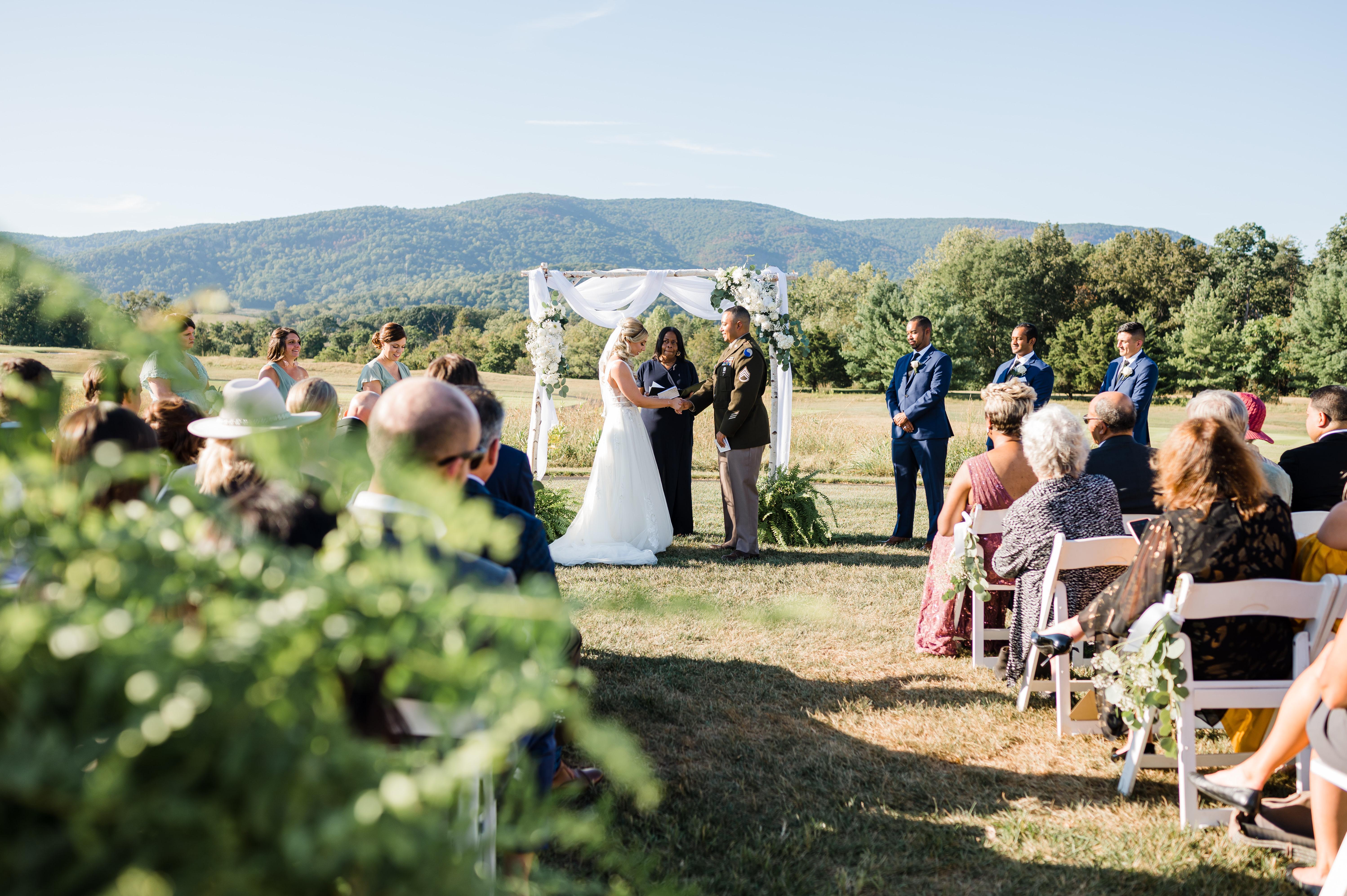 Our Ceremony Lawn is directly behind the Events Hall, adjacent to the 17th Hole of the golf course, and overlooking the Blue Ridge Mountains. There is plenty of space for 175 guests to be seated for ceremonies, and then also room for cocktail receptions afterwards as well.