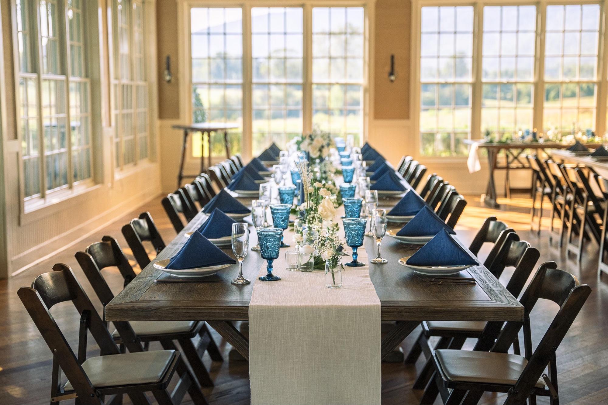 A quaint blue dining room to host small functions or add to larger receptions.