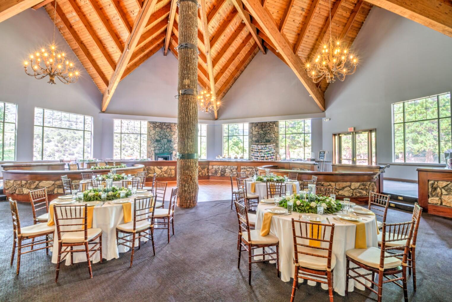 Host your event in our private banquet space, which accommodates up to 125 guests, or choose our outdoor ceremony location surrounded by majestic Aspen Pine trees. The rustic lodge aesthetic, with its modern touches and original cabin charm, provides a memorable and picturesque backdrop for any occasion. Let us help you create an unforgettable event that feels a world away from the city.