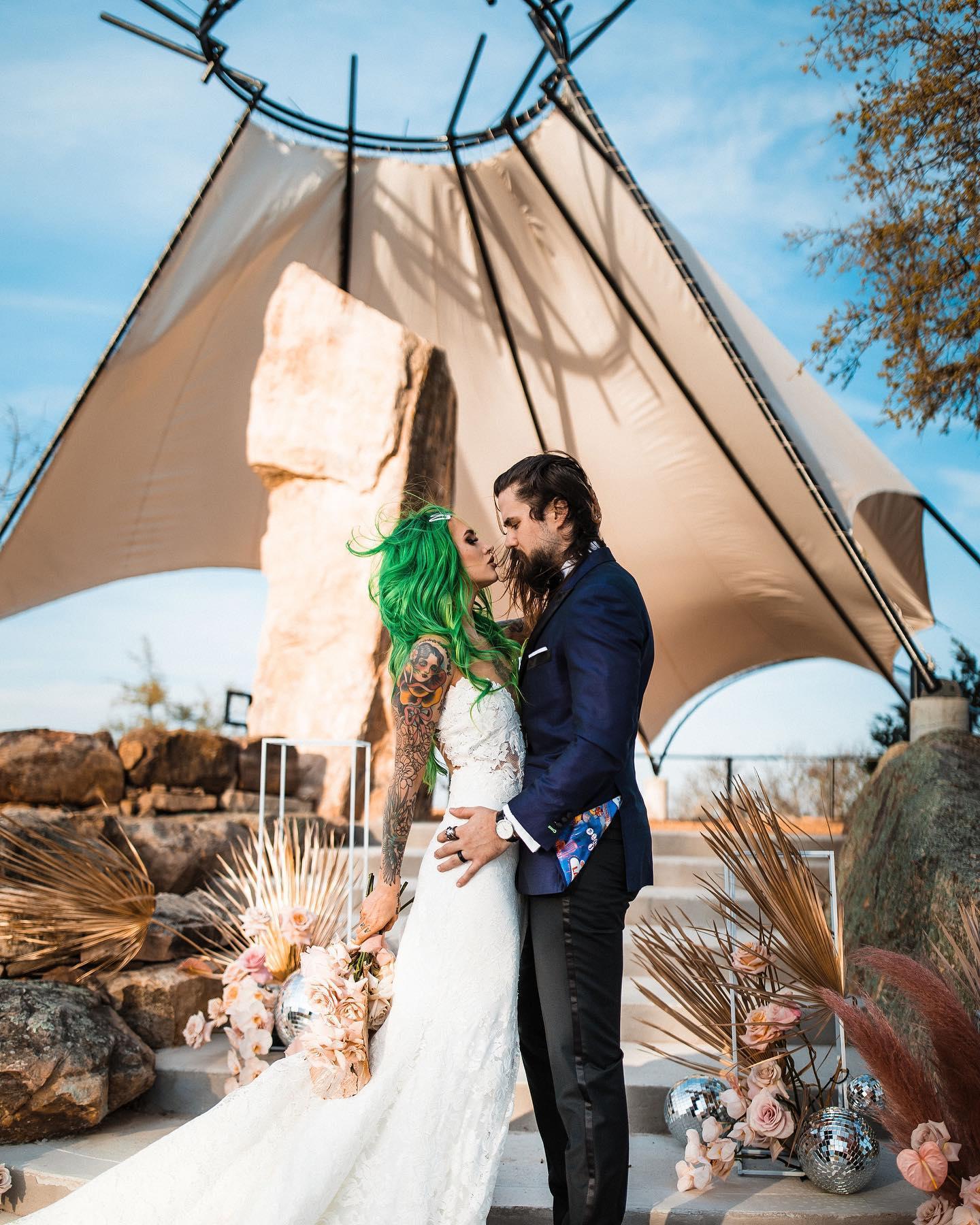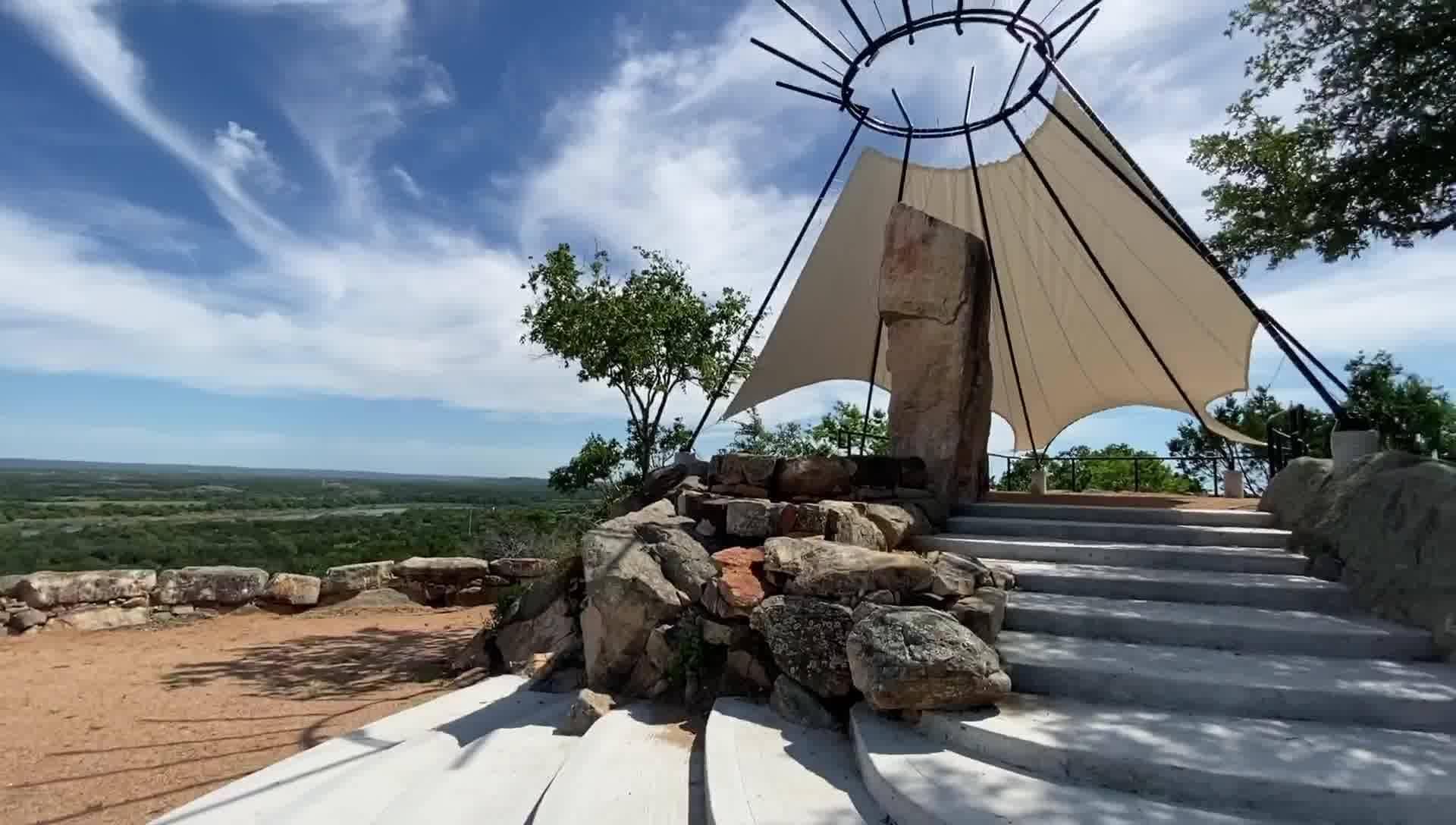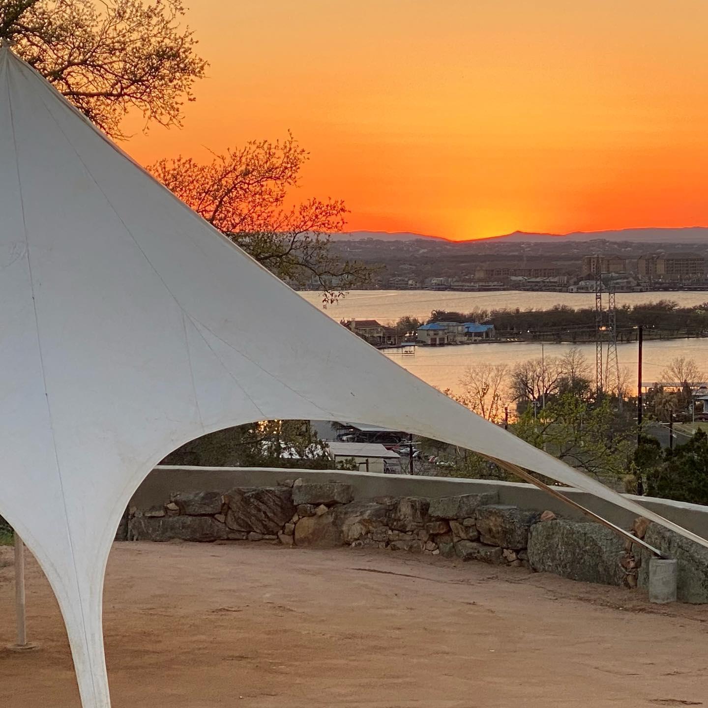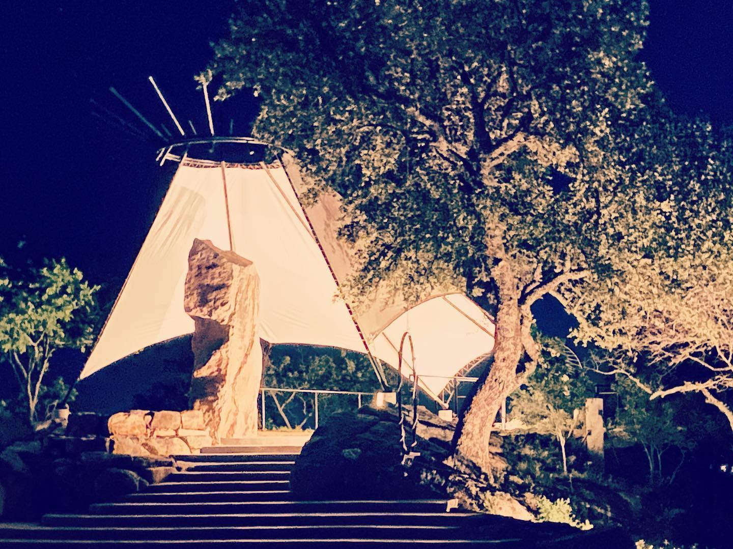Located in Marble Falls, Texas, Hozhoni on the Hill is a park and outdoor wedding venue. Offering premier glamping opportunities in the Texas Hill Country, this destination in a desirable retreat. Complete with stunning and awe-inspiring views, Hozhoni on the Hill can be an ideal celebration location. Hozhoni on the Hill has a chapel where couples can hold their memorable and precious ceremony. At this spot, couples and their guests will encounter a large standing stone and a sun-sheltered tipi-like structure. Blended into the landscape, a set of stairs leads up to the chapel's location. Amplifying the beauty of the area, foliage and trees offer shades of green, reminding all present of the nature that surrounds them. Following the exchange of vows, couples will have the option to host an on-site reception. The area where this takes place is perched high upon a hilltop, surrounded by vistas of Texas hill country and lakes LBJ and Marble Falls.