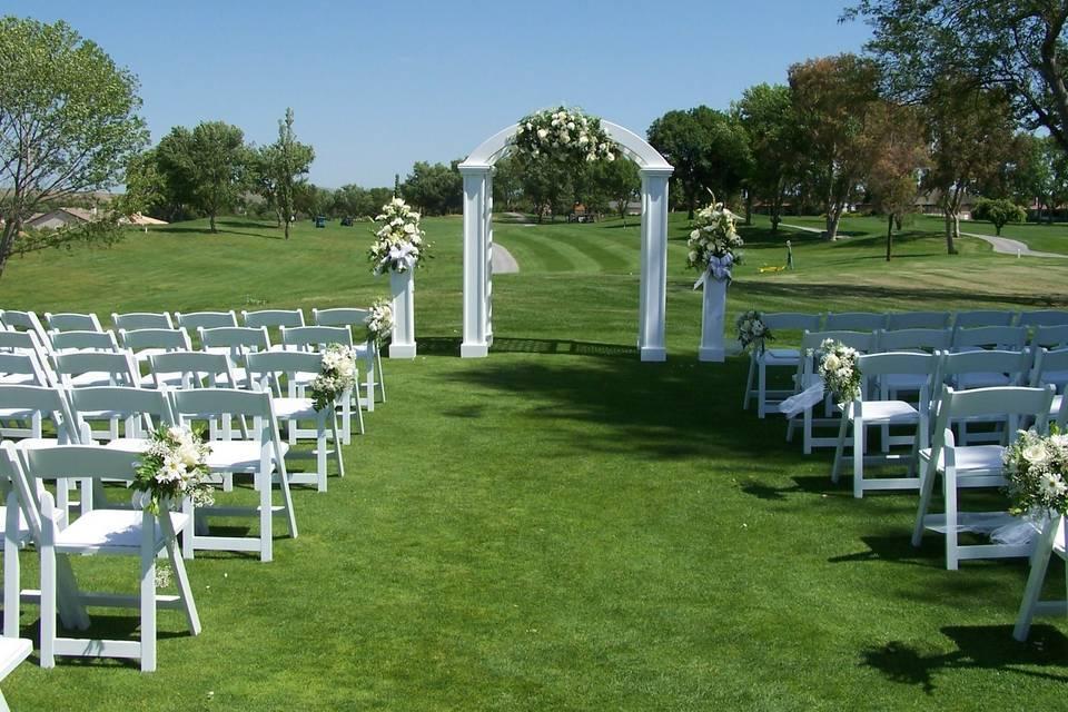 Our beautiful ceremony site is located on our golf course between holes 4 and 5. It over looks the gorgeous Hollister country side and is open to many different ceremony styles.