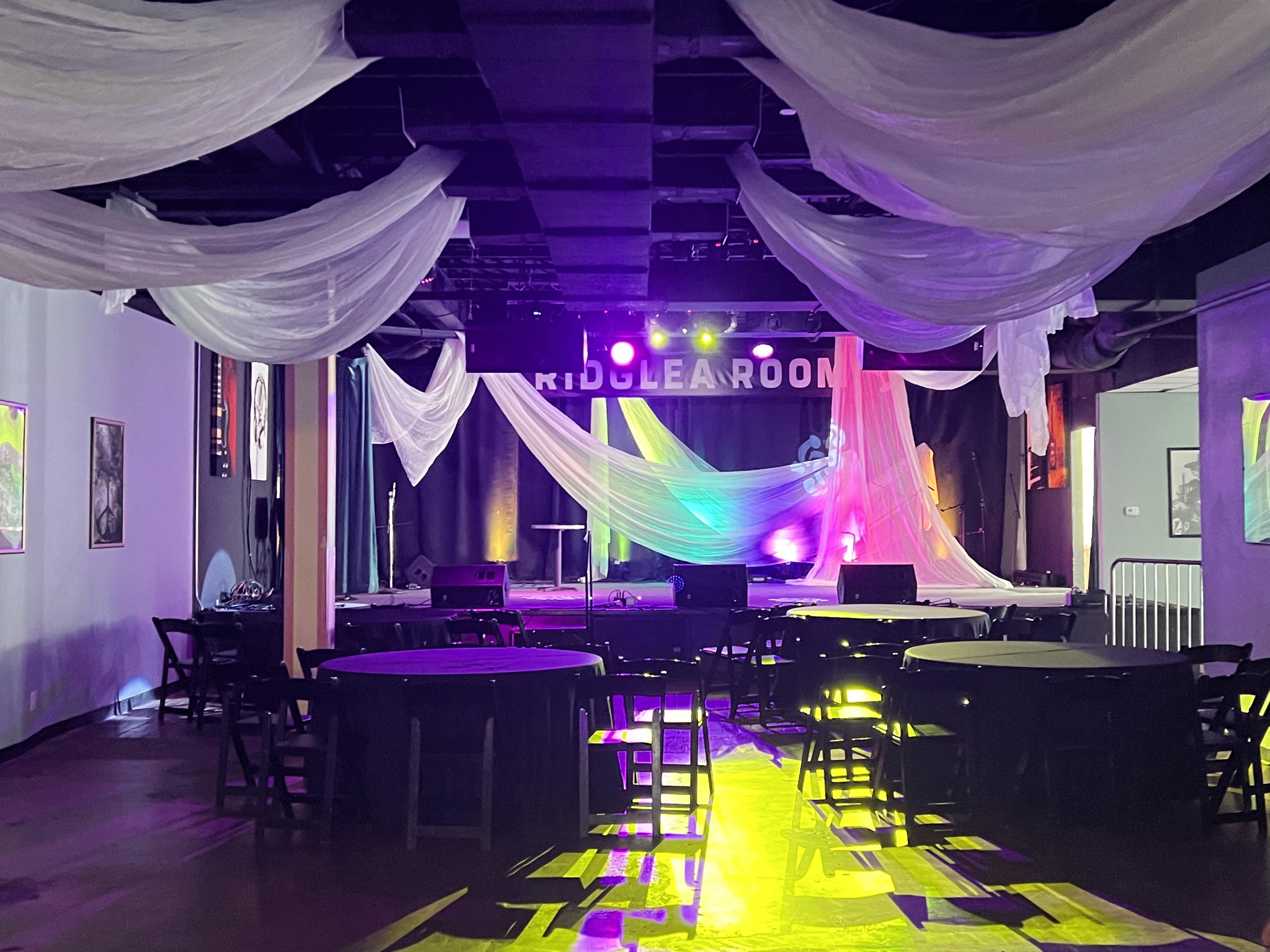 Newly renovated space for mid-sized events. The Room offers a stage, sound system, lighting, and dressing room with side-stage access for Live Shows, Concerts, Corporate Events, Private Parties, etc. The Room has it's own Bar/Concession area & Event Merchandise area