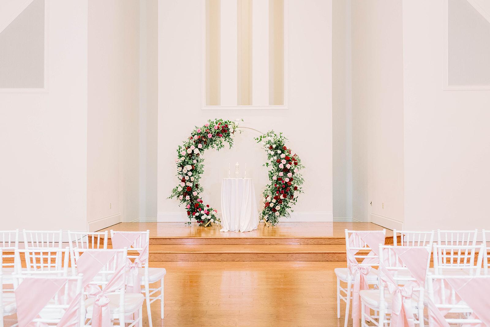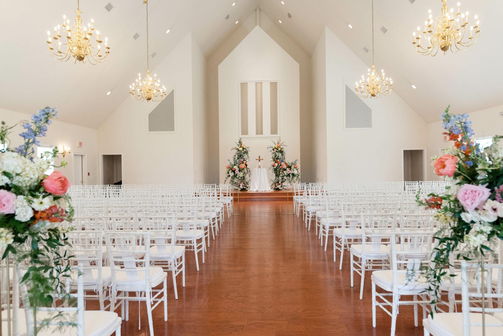 The chapel boasts an elegant dressing room for the bride, bachelor’s retreat for the groom, oak floors, white chiavari chairs and state of the art acoustics. The climate controlled Chapel boasts an elegant dressing room for the bride, bachelor’s retreat for the groom, oak floors, white chiavari chairs and state of the art acoustics. The simple and elegant altar allows for easy personalization or can be left as is. A Ritz Charles chapel attendant will be there to assist you on your big day, helping to do everything from seating your guests to opening the doors before you walk down the aisle. Our Chapel will offer your guests elegance and convenience, as the accompanying Ritz Charles Garden Pavilion and Ballrooms are just a few steps away.