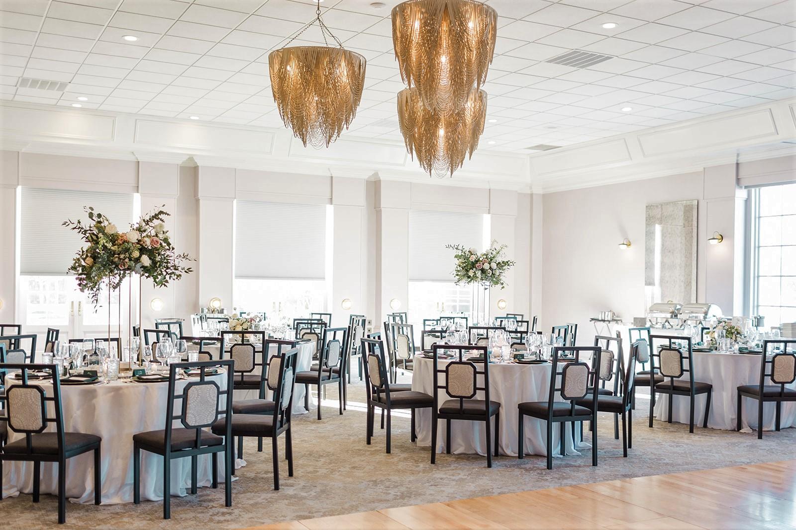 Perfectly groomed grounds, stately portico, polished floors and soaring ceilings; welcome to the Completely Renovated Ritz Charles Ballrooms! Whether you are planning a lavish wedding reception, splashy gala, business meeting or rehearsal dinner, we can provide the perfect atmosphere. Ritz Charles has five beautifully appointed ballrooms that hold between 100 and 500 people each, with the entire venue accommodating over 1,000 people. Over 13,000 square feet of continual space can be customized to accommodate an event of any size. For your wedding day the Ritz Charles Ballrooms can accommodate both ceremonies and receptions. Start in a small intimate space for your ceremony, them move to a larger ballroom for dinner and dancing. Our elegant ballrooms are also conveniently located next to the Ritz Charles Chapel.