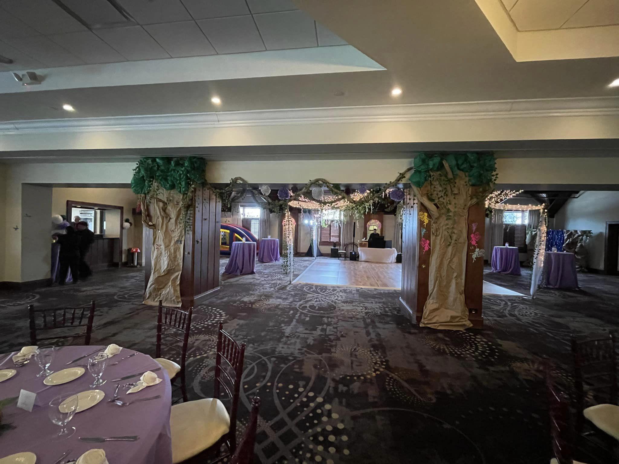 The Club has two stunning ballrooms with a modern romantic feel that can accommodate up to 300 guests. It can be divided into two separate rooms called the Great Hall and the Forest Ballroom or can be one Grand Ballroom together. This bright and airy space is very inviting with a beautiful chandelier as it's focal point and expandable doors that open up to an inviting. The Great Hall is all about character and tradition. The hand-crafted ceiling of this gorgeous room has been restored to its natural beauty and is always the talk of guests who attend an event in this room. There is a gorgeous fireplace and bar in the room to make it cozy and inviting. This room is also popular for weddings.
