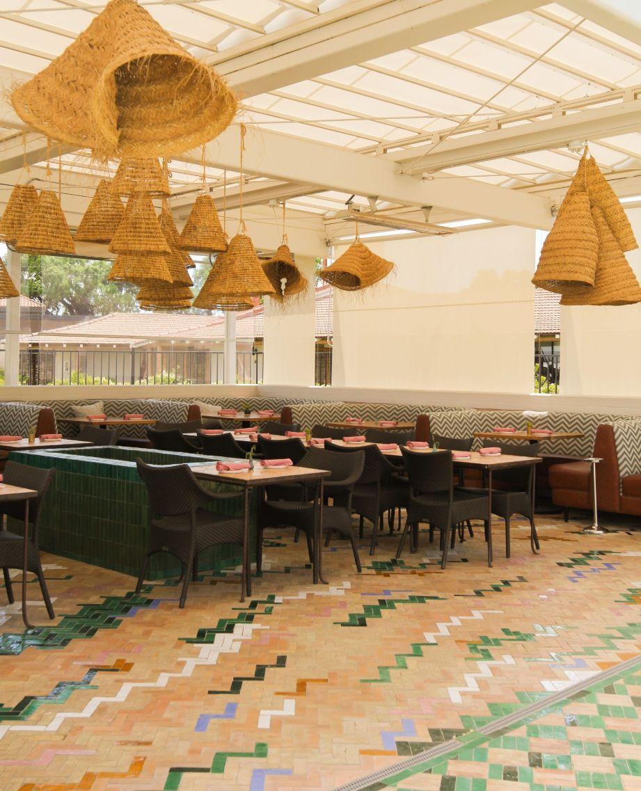 River Lodge, a midcentury motel transformed into a retro-chic resort, offers a uniquely stylish and vibrant setting for your wedding celebration. The three-acre property provides a lively atmosphere for you and your guests to enjoy, blending retro charm with modern amenities. • The Courtyard: With lush lawns, rose gardens, and inviting fire pits, our central courtyard is the ideal space for an outdoor ceremony or a relaxed reception. This beautifully landscaped area provides a versatile and scenic backdrop for your special day. • Ciao Papi: This Italian-inspired poolside restaurant and bar features a covered outdoor patio with views of the sundeck and surrounding landscape. It is the perfect spot for a rehearsal dinner, a post-wedding brunch, or a sophisticated reception. • The Pool & Sundeck: A large 21-and-over pool and hot tub create a lively and fun atmosphere for a welcome party or a pre-wedding gathering where your guests can relax and mingle.