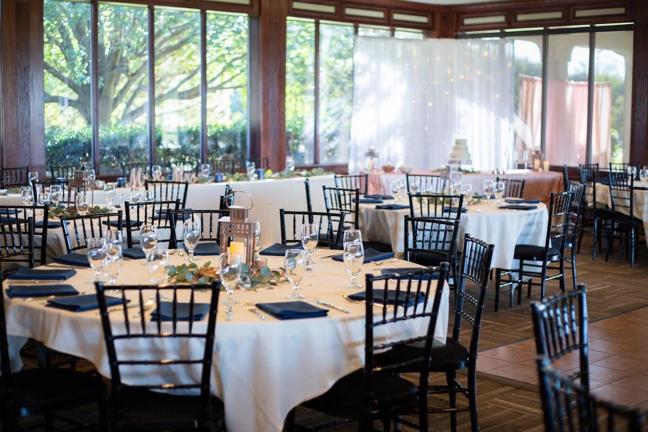 All day access - 4 hour reception (an additional hour for ceremony with wedding packages) - Complimentary room rental for rehearsal dinner (availability determined 2 weeks before) - Complimentary room rental for morning after brunch (availbaility determined 2 weeks before) - Bridal suite - Men's locker room - 60-inch round tables - 8 ft and 6 ft rectangle tables - Bistro tables - Black chiavari chairs for reception and indoor ceremony - White garden chairs for outside ceremony - Custom linen colors - Dance floor - Licensed bartenders - Uniformed servers - Security - Water, tea, and coffee service - China, glassware, and flatware - Set-up and break-down of club items - Complimentary bottle of champagne for wedding couple