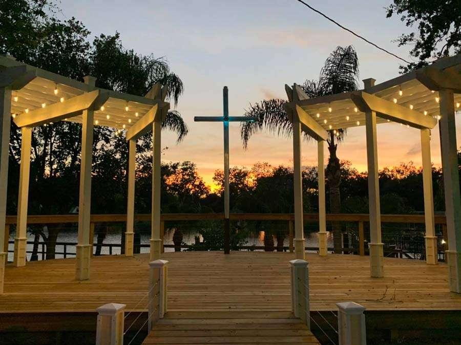 River Rendezview is a wedding venue nestled along the San Bernard River 60 miles south of Houston near Brazoria, Texas. Options abound to help make your day memorable including an 1800’s style Paddle Boat, River Grace Chapel, a 400-year-old oak tree, Party Barn and screened Patio/Deck overlooking the river. This venue can be your one-stop wedding shop; you bring the groom & dress and we can do the rest. Property includes a wedding chapel, restaurant, multiple reception areas plus a Bed & Breakfast. This venue is cozy and inviting and filled with elegant country charm. Facilities and Capacity This waterfront venue has a party barn that is ideal for a shabby chic wedding or country-style event, accommodating up to 400 people. There is also a large screened-in porch area adjacent to the river that allows for a unique outdoor patio wedding. It can be used as an extension of the party barn for cocktails and mingling, accommodating up to 250 guests.