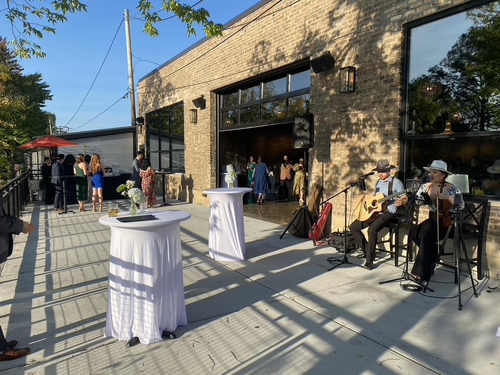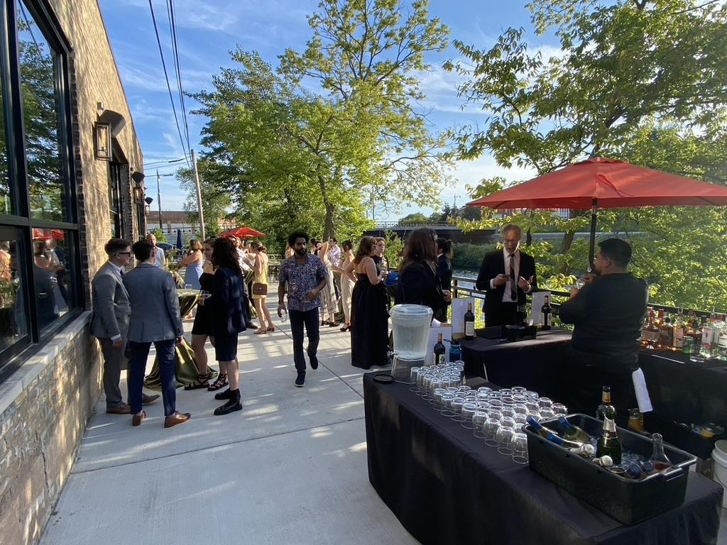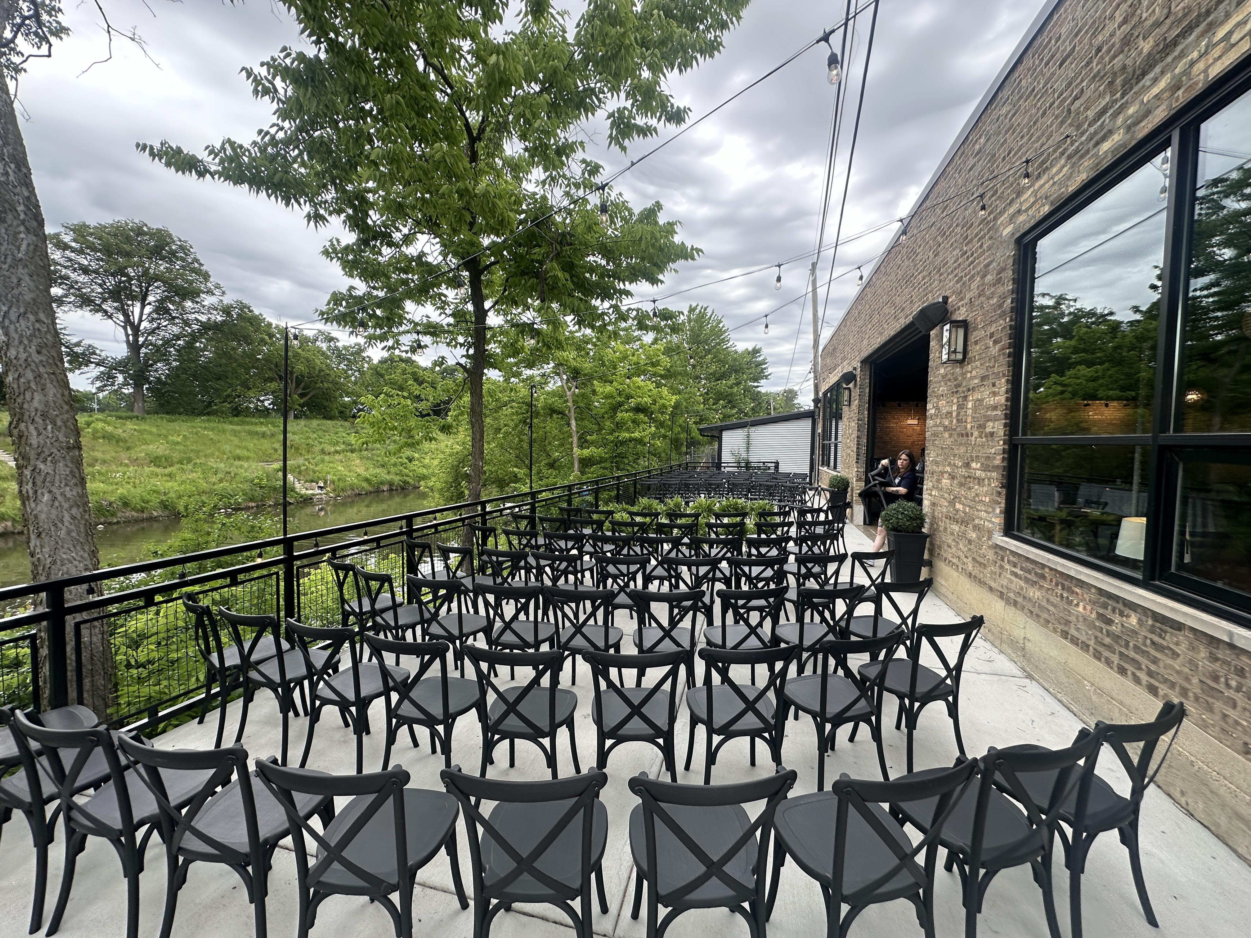 Our outdoor deck is a private and secluded space to share a cocktail or mingle before, during or after your event. A large glass overhead door opens beautifully to west-facing views of the Chicago River, perfect for a sunset ceremony, cocktail party or private outdoor event. The deck is the perfect space to kick back and enjoy some live music, have a cocktail with friends or simply take in the tranquil surroundings.