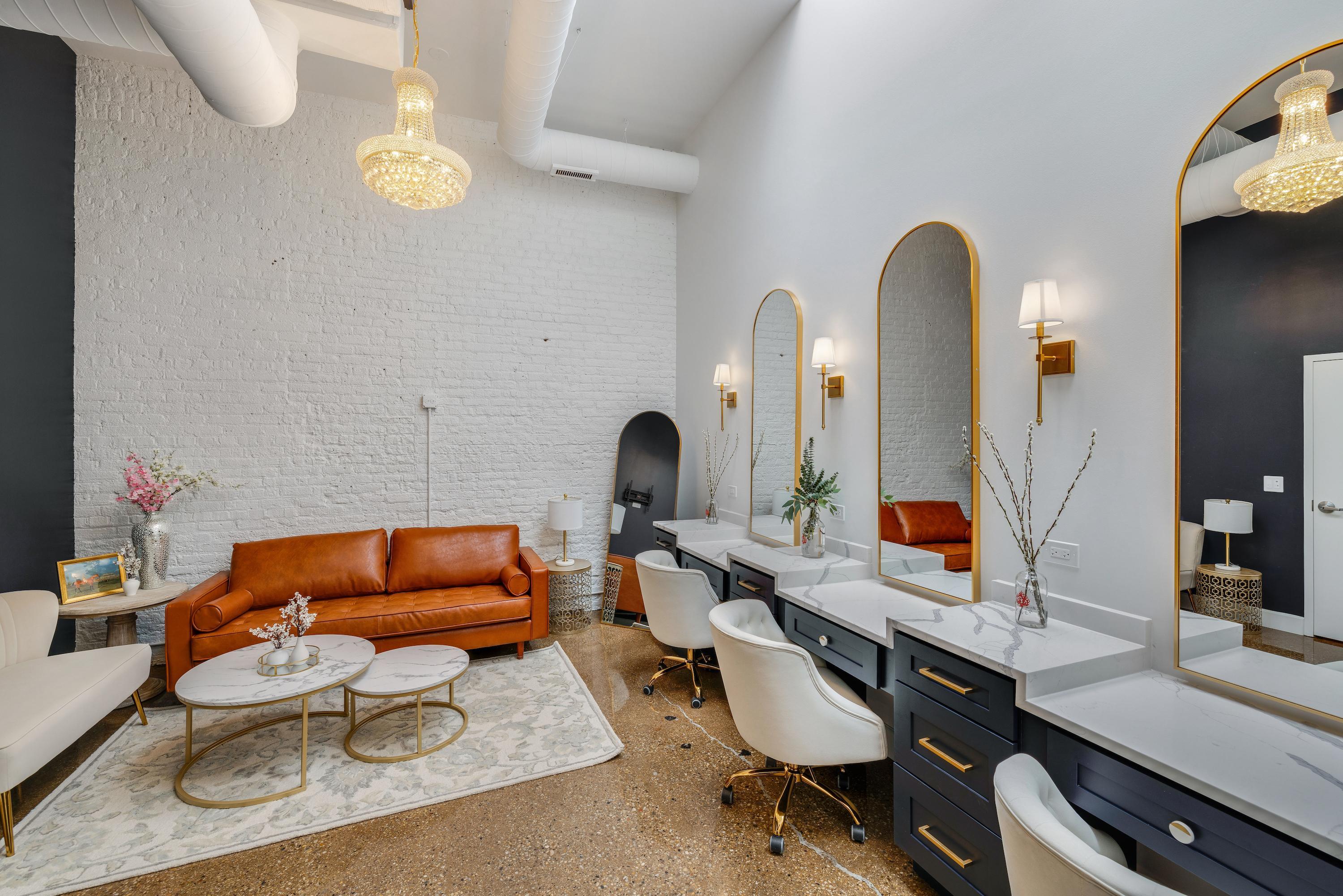 - Three hair and make-up stations - Two couches - Direct access to women's restroom - Refrigerator for beverages