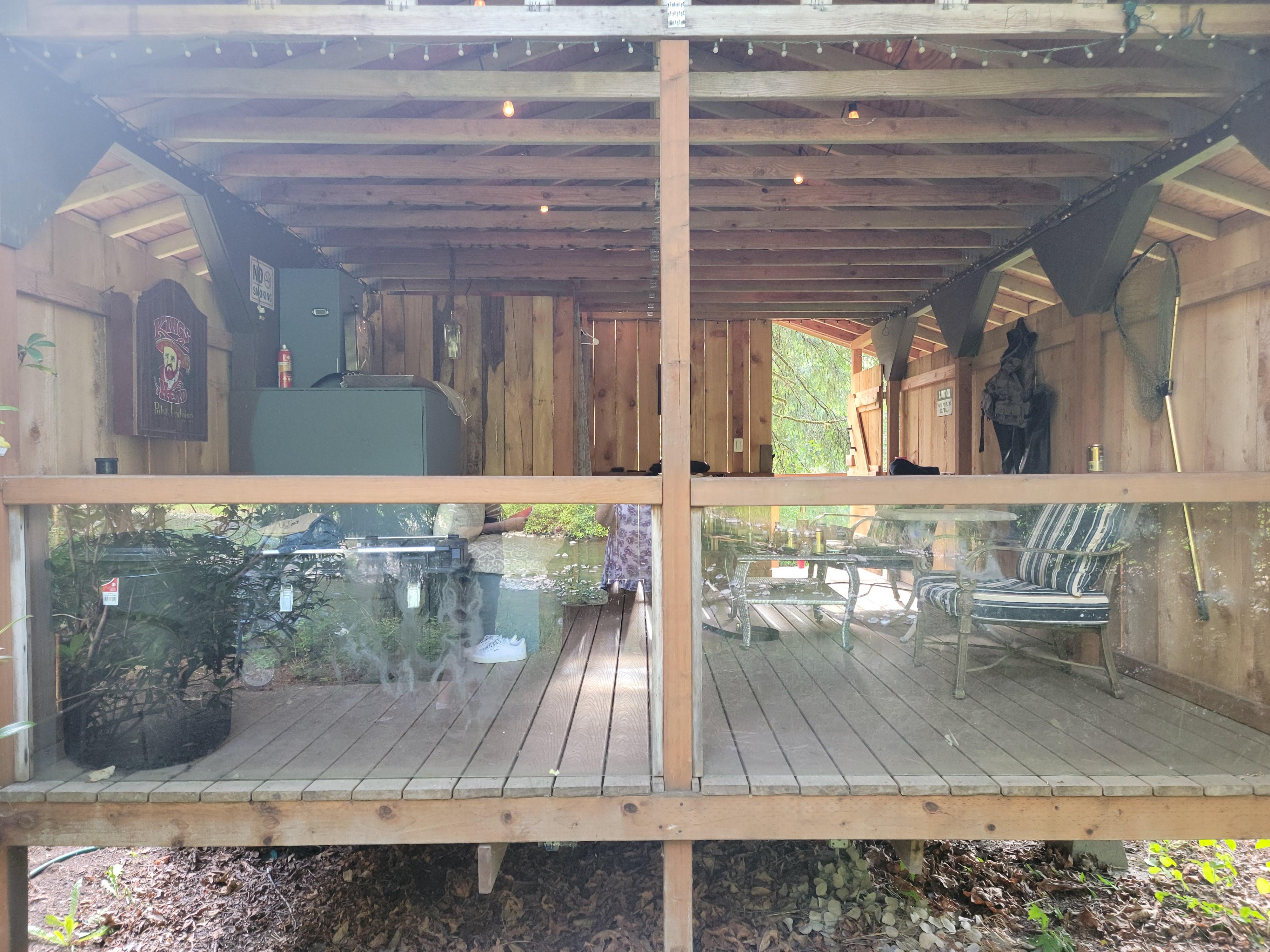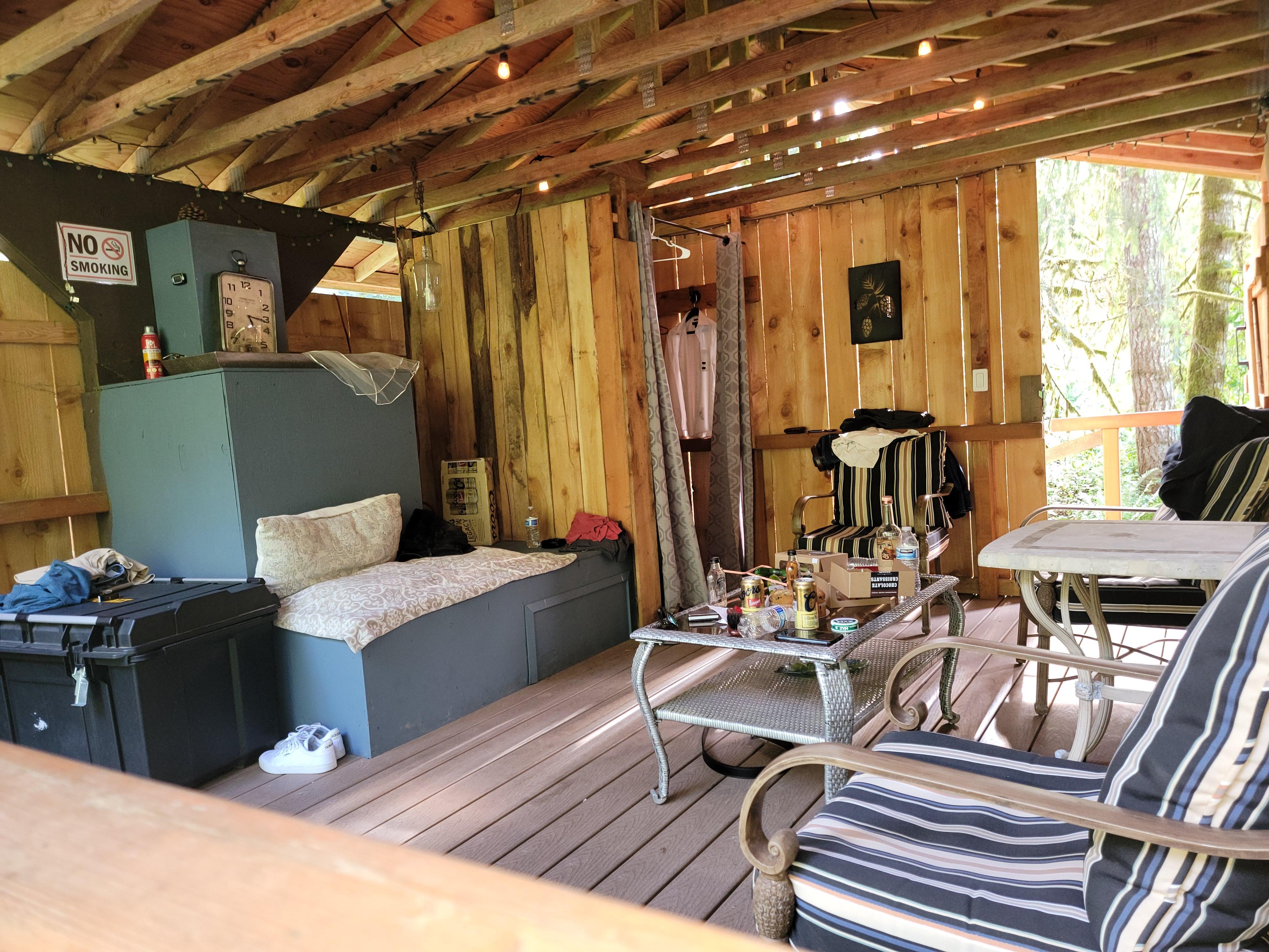 Our riverfront, 3-wall cedar cabin features a private changing area, dart board, lounging area and an unstoppable view of the mighty Pilchuck river. Bask in the glorious views while you enjoy the peaceful sounds and vibes.
