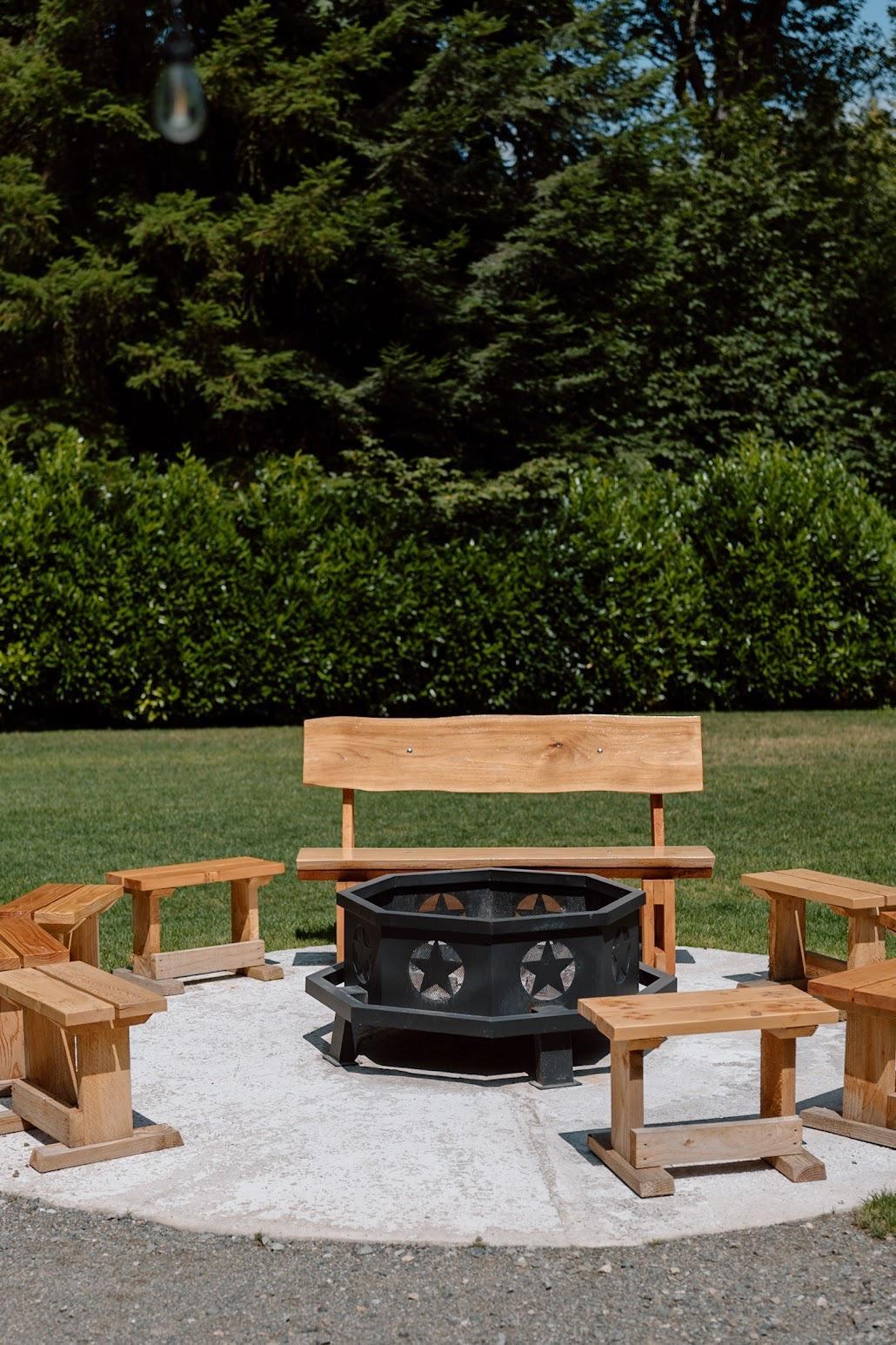 Beautiful wood-burning firepit and bespoke benches for your enjoyment.