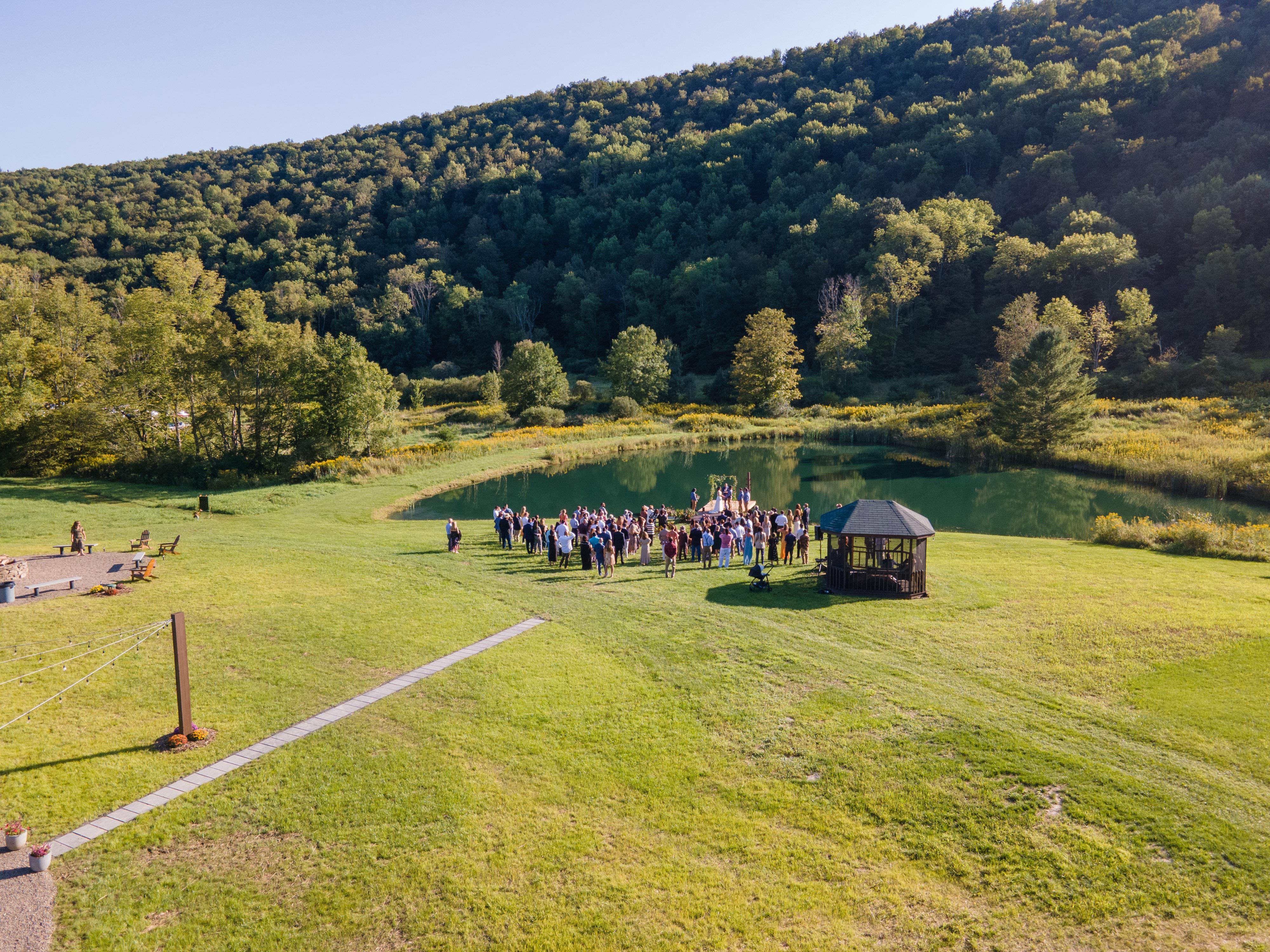 Set in between the barn and the pond, the patio is a perfect space for your cocktail hour, reception, and late night bon fires.