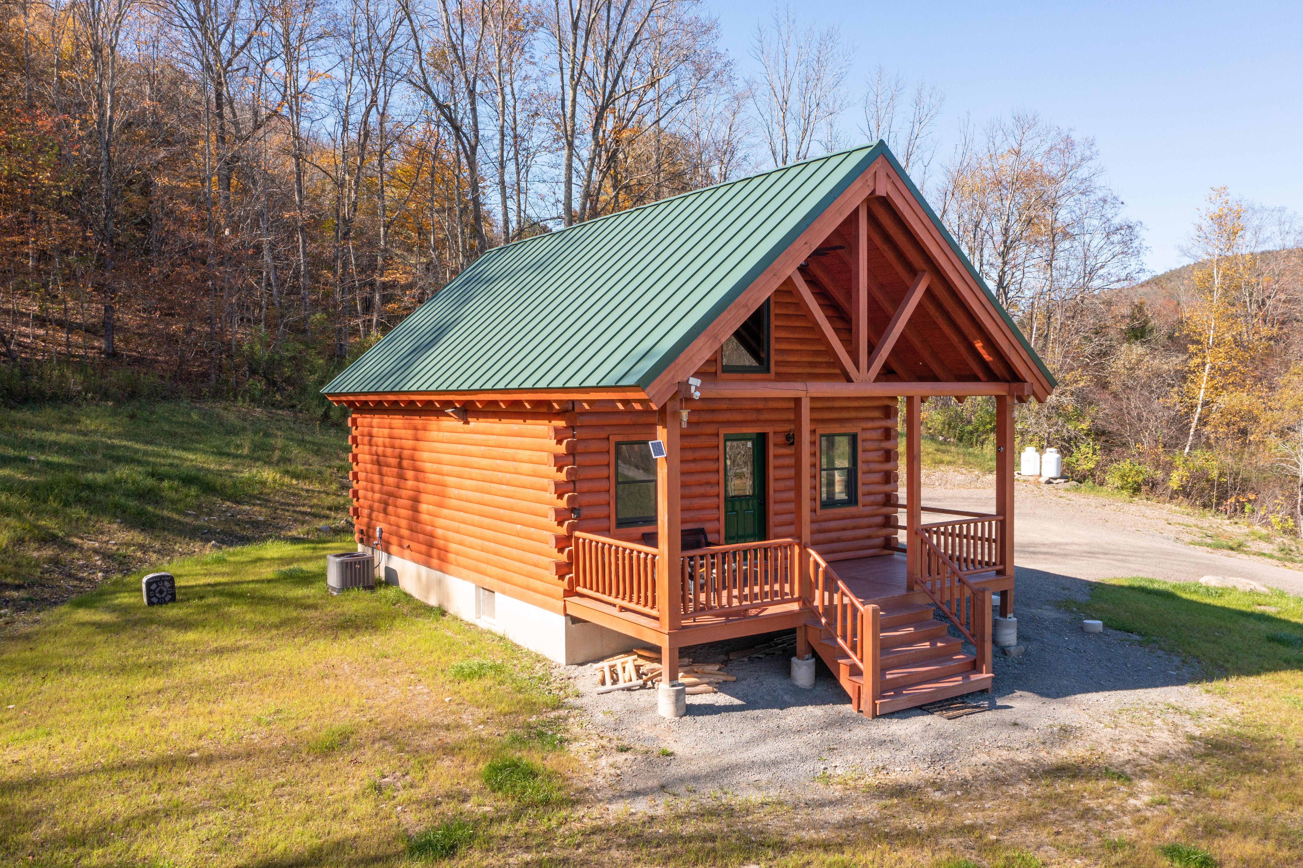 A cozy fully furnished modern cabin that overlooks the pond and barn with a breathtaking view of the mountains.