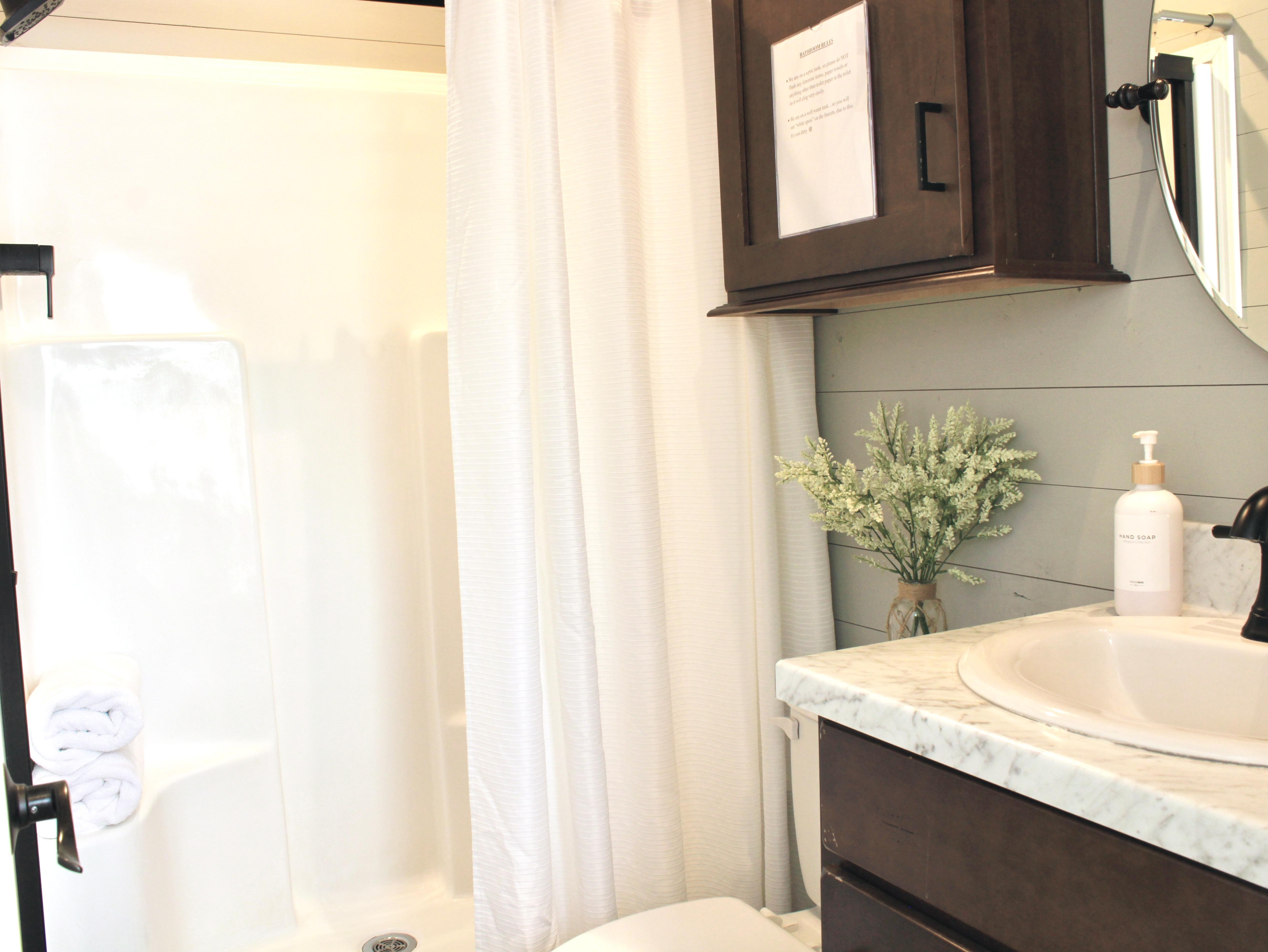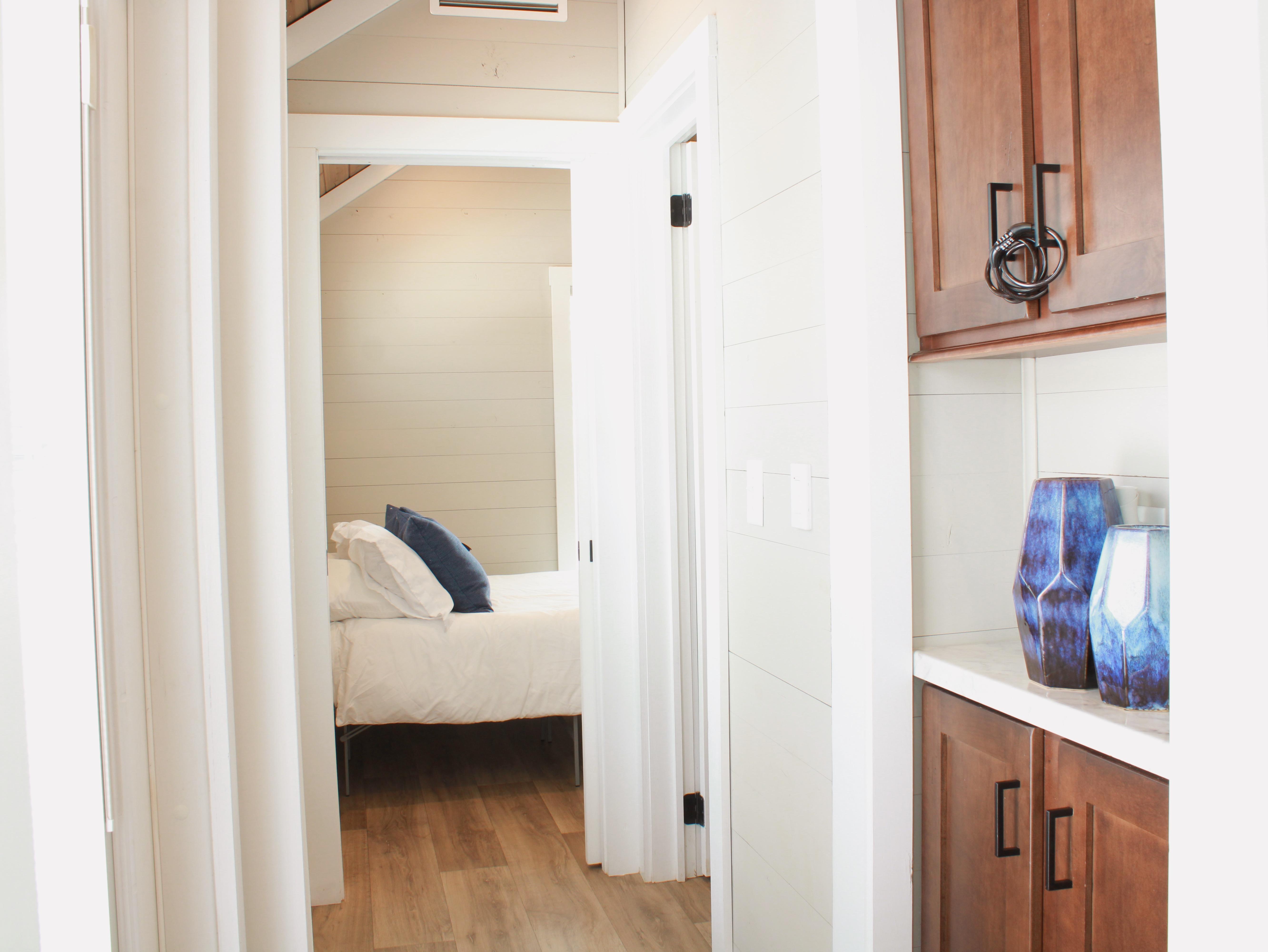 Two tiny homes with enough space for the bridal party. Both have bedrooms and bathrooms, plus kitchen and living room.
