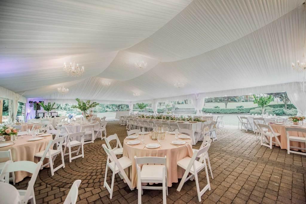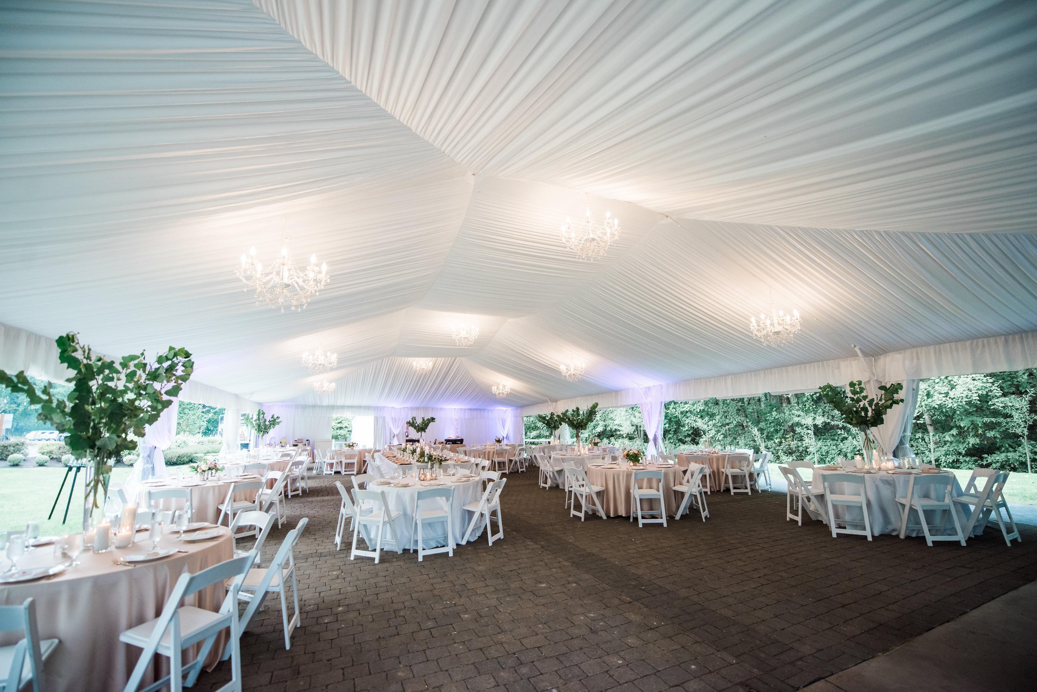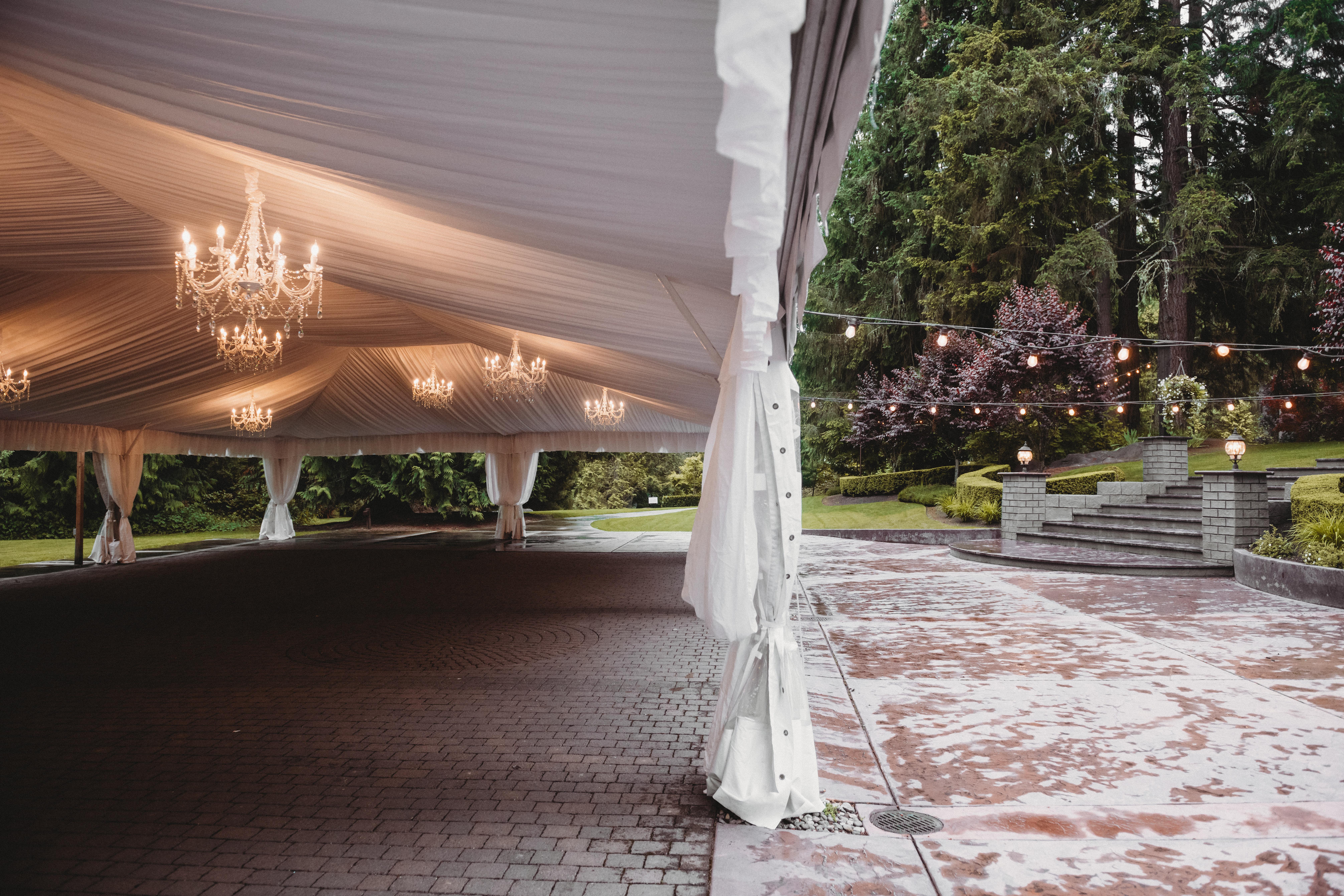 - Tables and Chairs - Tent with all fabric draping - Chandeliers - Tent walls for inclement weather