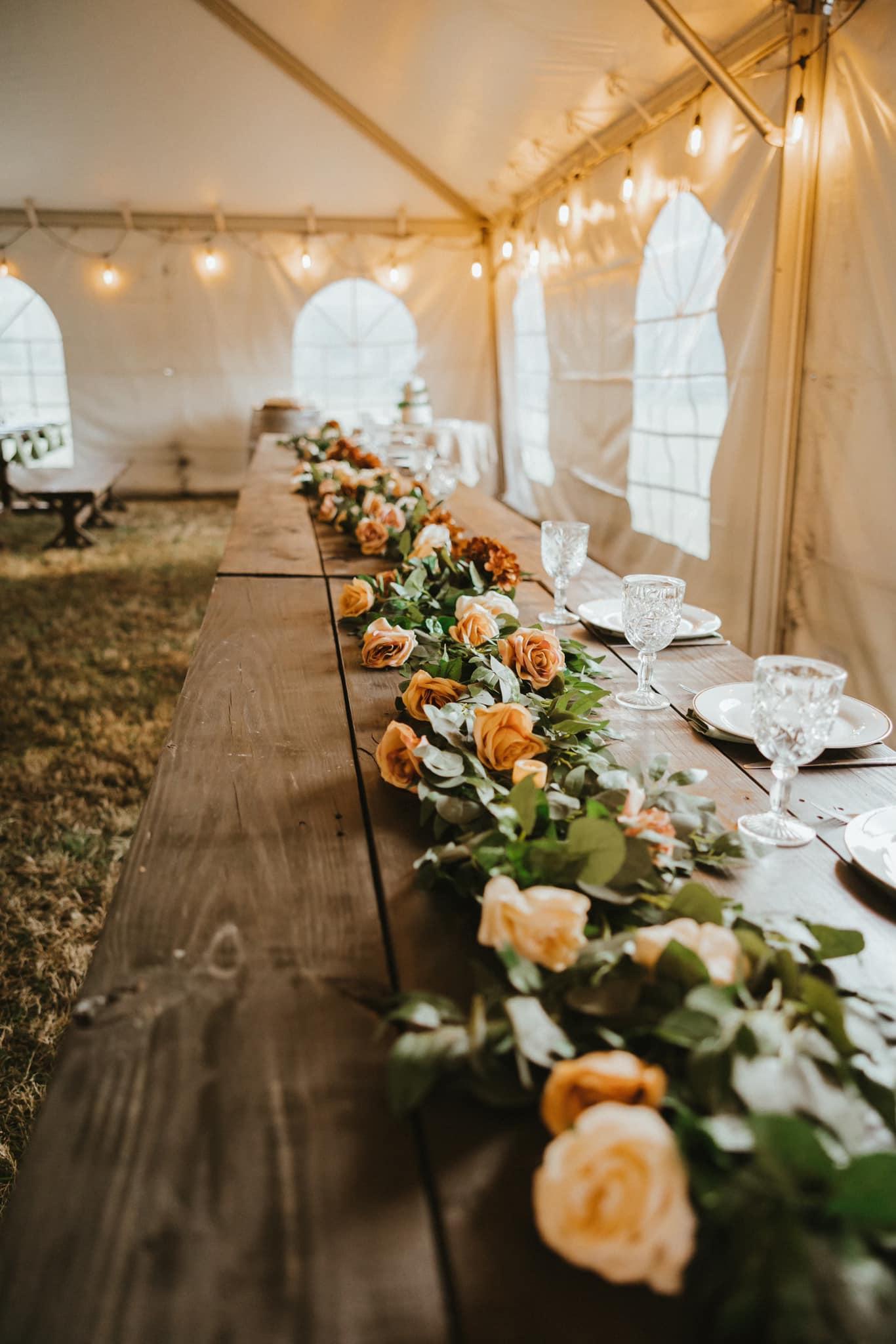 Package includes all-day site rental of castle courtyard, bridal and groom suites inside the castle, open aired tavern with bathrooms, 70'x40' Party Tent, 8' wooden farm tables/seating with greenery and lanterns, fire torches/fire pits, DJ, rehearsal evening, coordinator, catering, BYOB and servers.