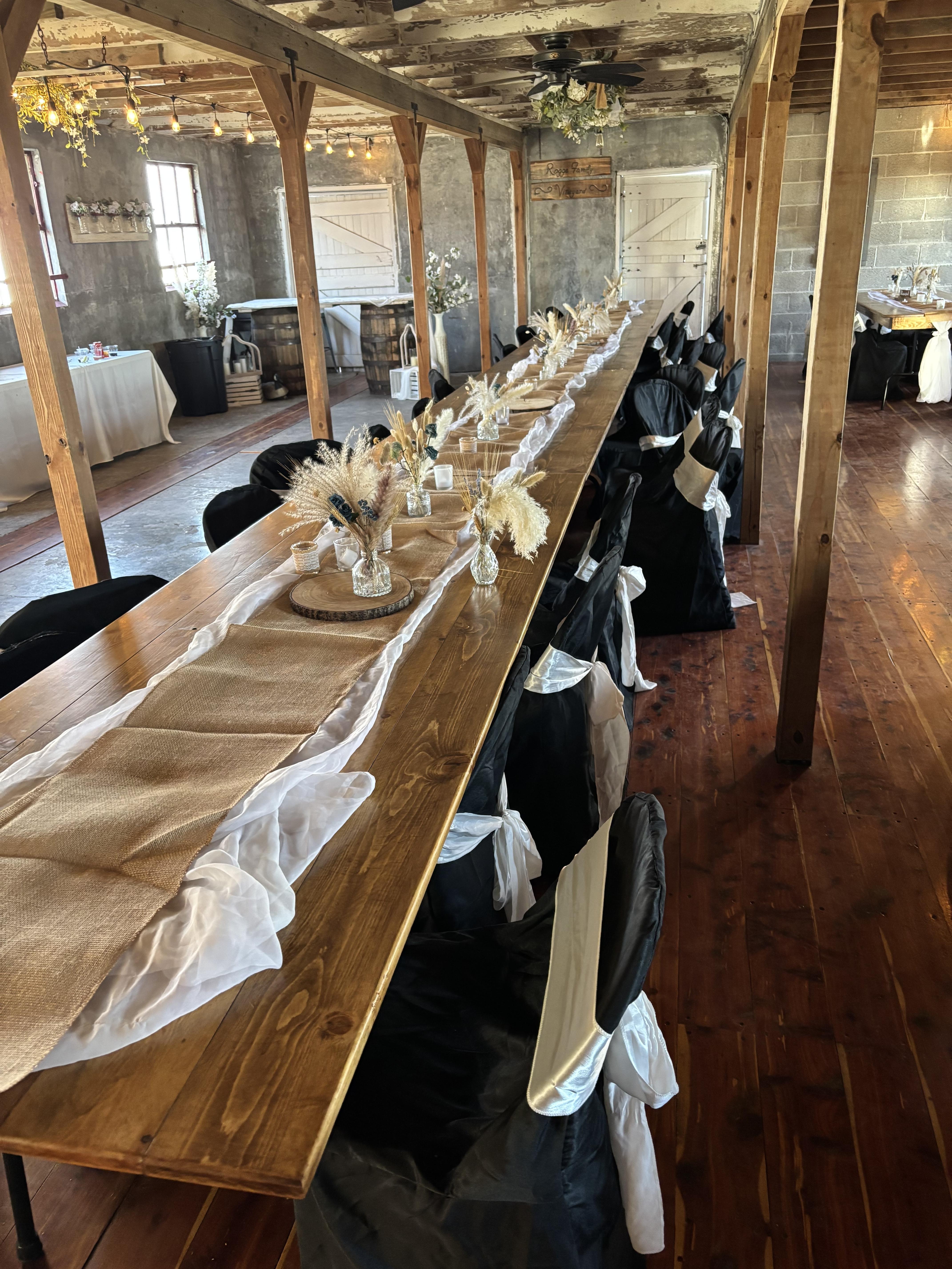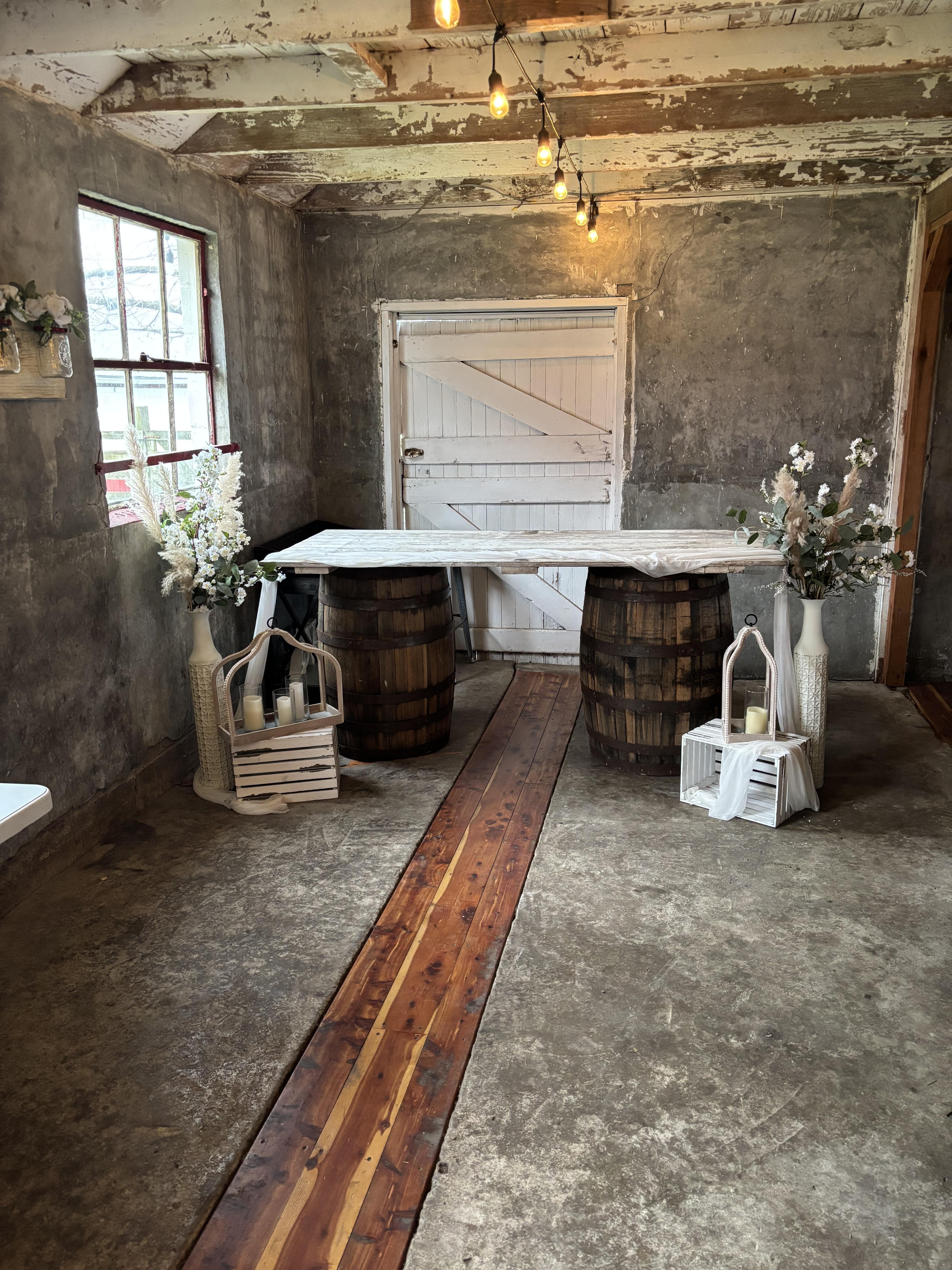 We offer a clean and ready venue for you to come in and design and set up the wedding space of your dreams. You come out as many times as needed in advance of your wedding to plan and go through decor. We provide everything you need; you bring in a small team to create a personalized wedding backdrop.