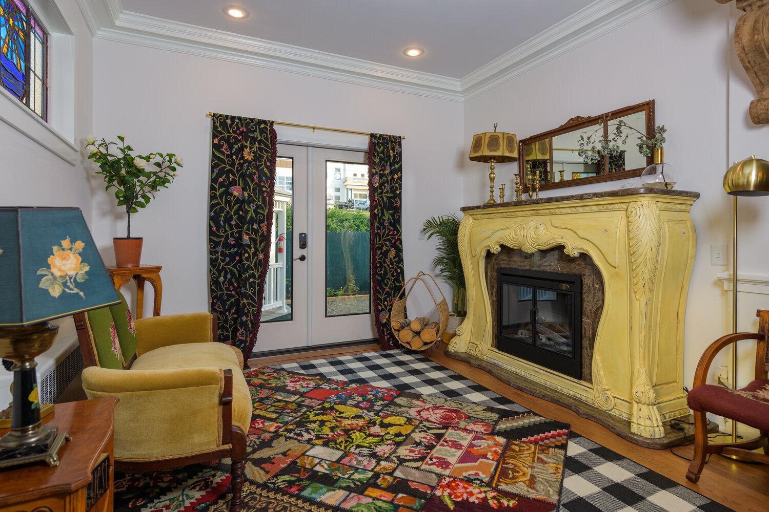 Rented to one group at a time, this stunning Historic Landmark and former Catholic Convent offers 6 Guest Suites in the Mansion and a 7th Honeymoon Suite in the Carriage House. Each Guest Suite has its own full bathroom, and most suites also have a large flat screen Smart TV with Roku. Complete with stained glass windows from the property’s time as a nunnery, the former Chapel now serves as an open-concept living/dining area for your exclusive use, which opens directly to the private Rose Garden with Gazebo.