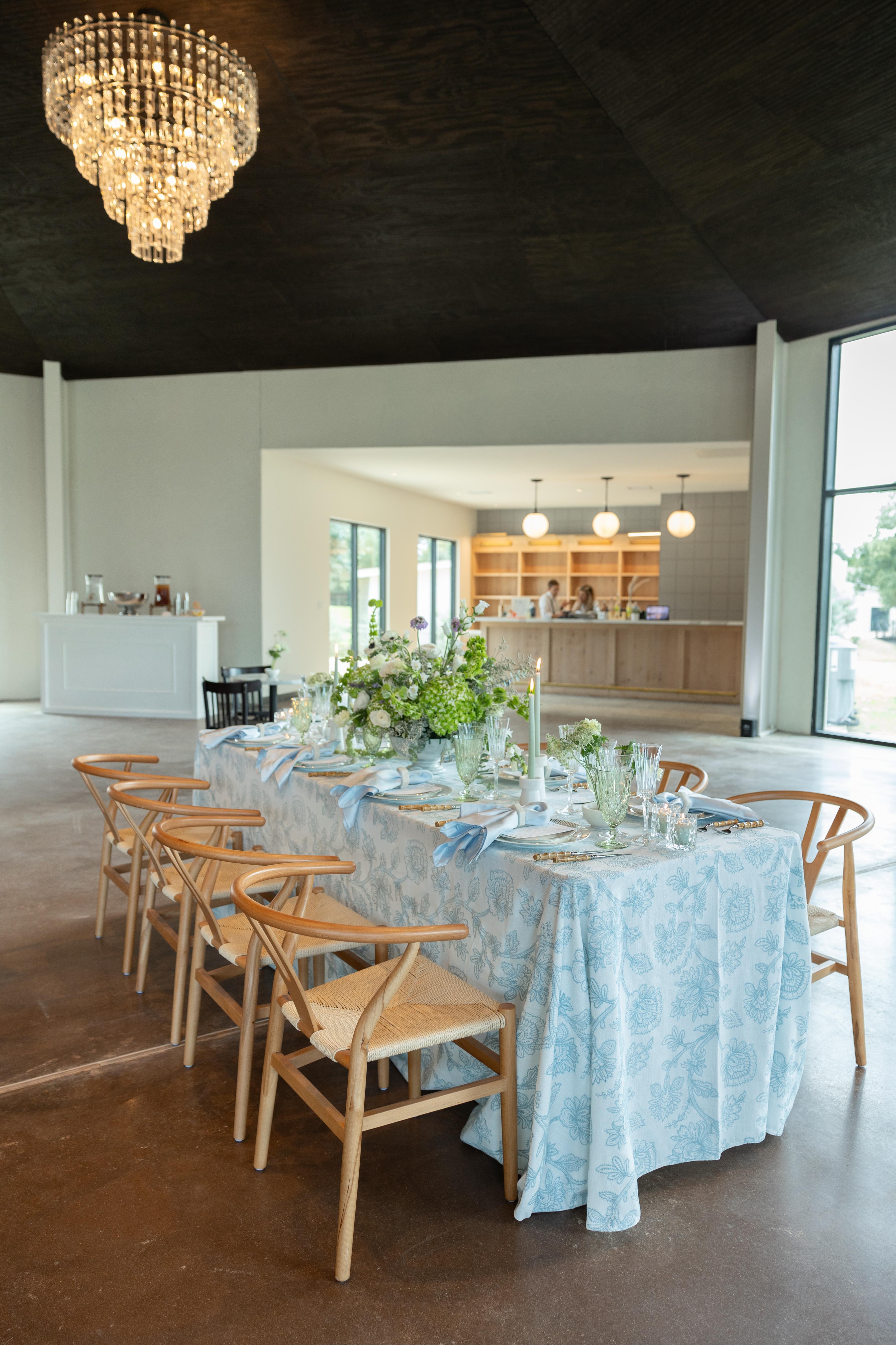 This space fits 300 seated people with a dance floor. It comes with a bar, all the furniture needed, and white linens included. There is also a lounge area in the back where people can sit and catch up, or you could put a photo booth back there.