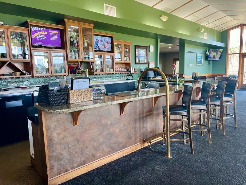 Offers a relaxing place to rest after a round of golf, or just unwind with some good food, drinks and friends. Kick back and watch your favorite game on the big screen television or hang out on the patio with spectacular views of the golf course and the surrounding grounds.