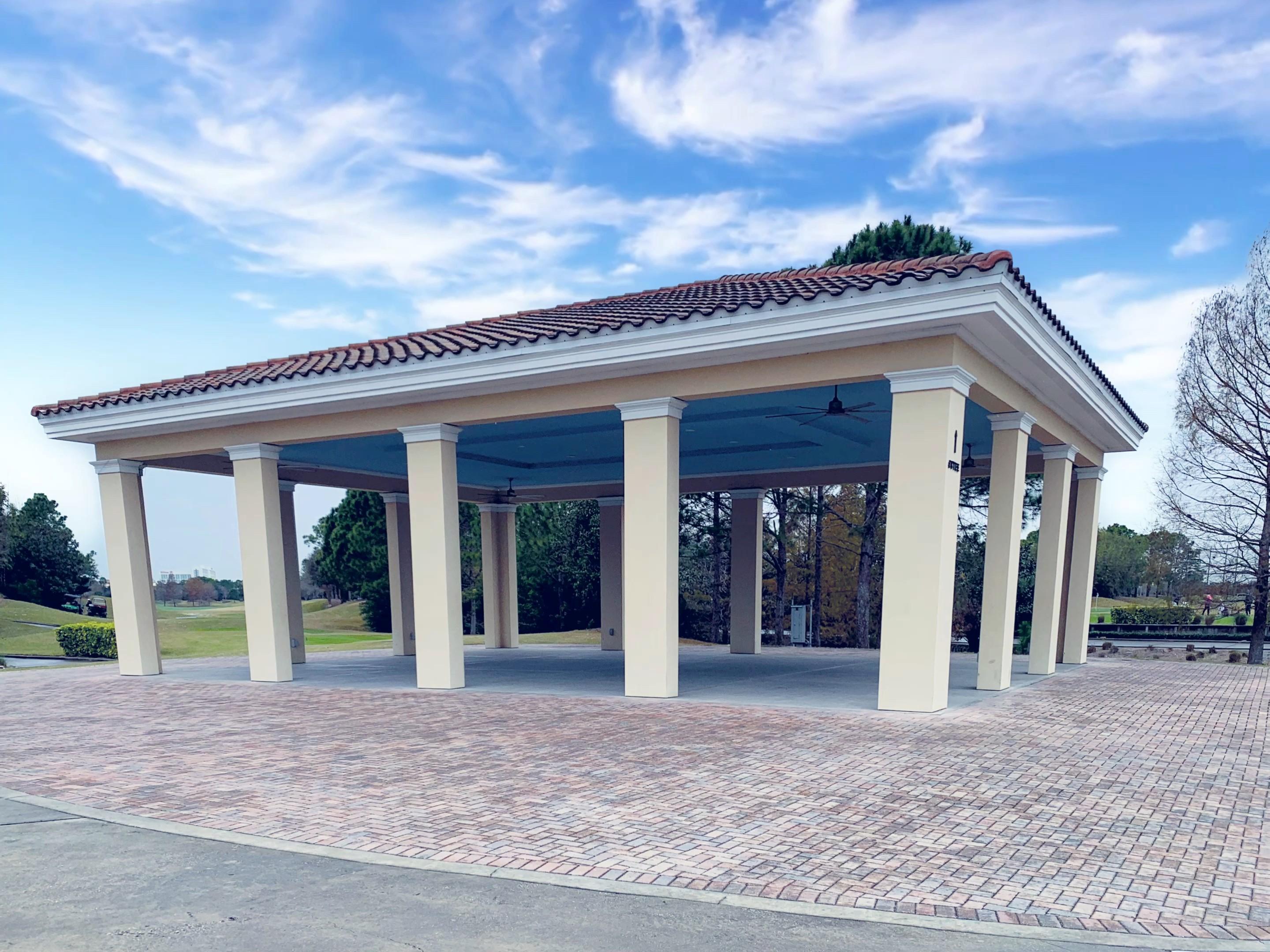 Shingle Creek Golf Club offers an outdoor covered pavilion with stunning views of the surrounding championship golf course.