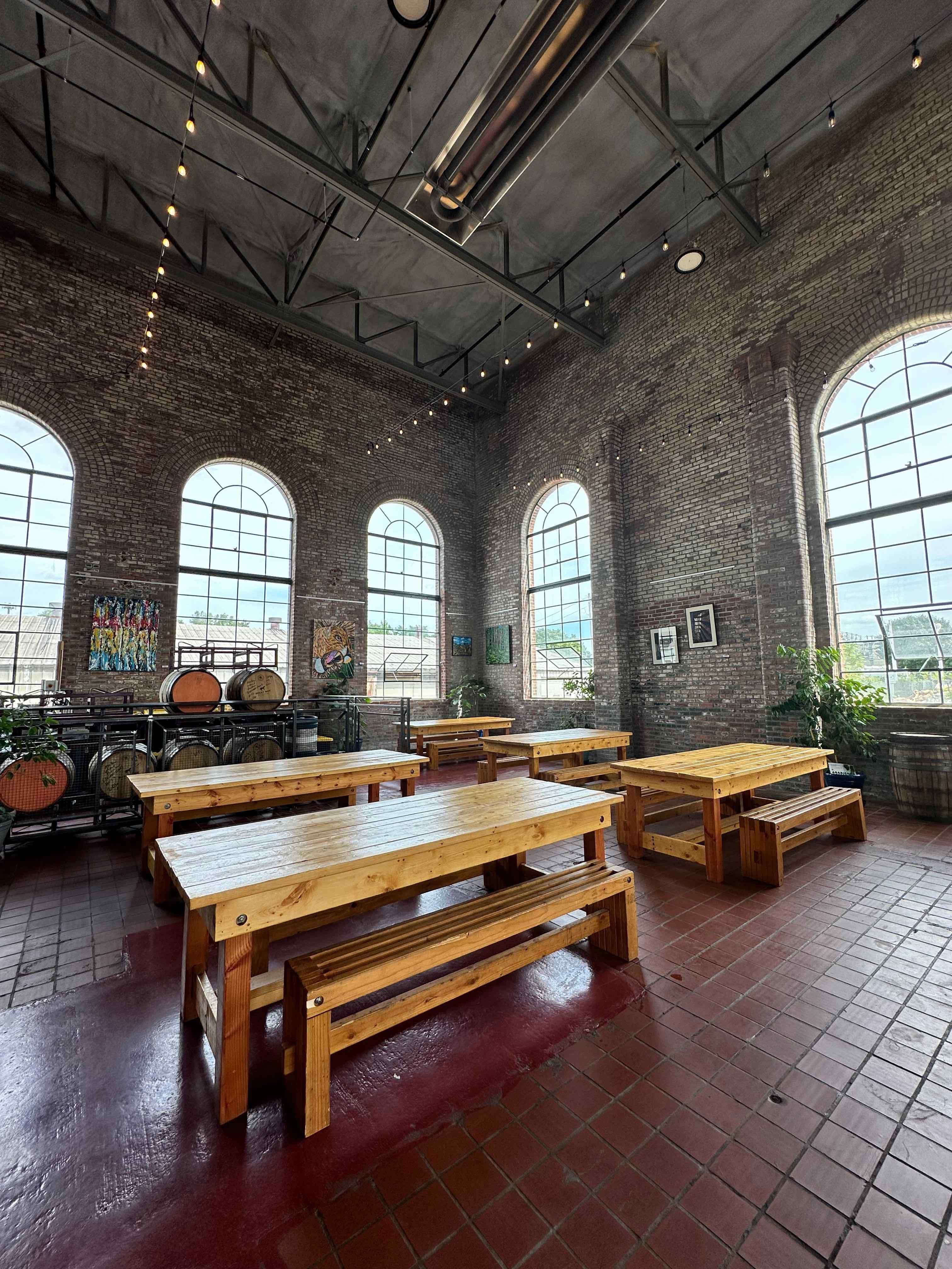 The Community Room has 9 large picnic tables with seating for 72 guests and standing room for up to 100 people. Visit https://roundheadbrewing.com/private-events/ to book online!