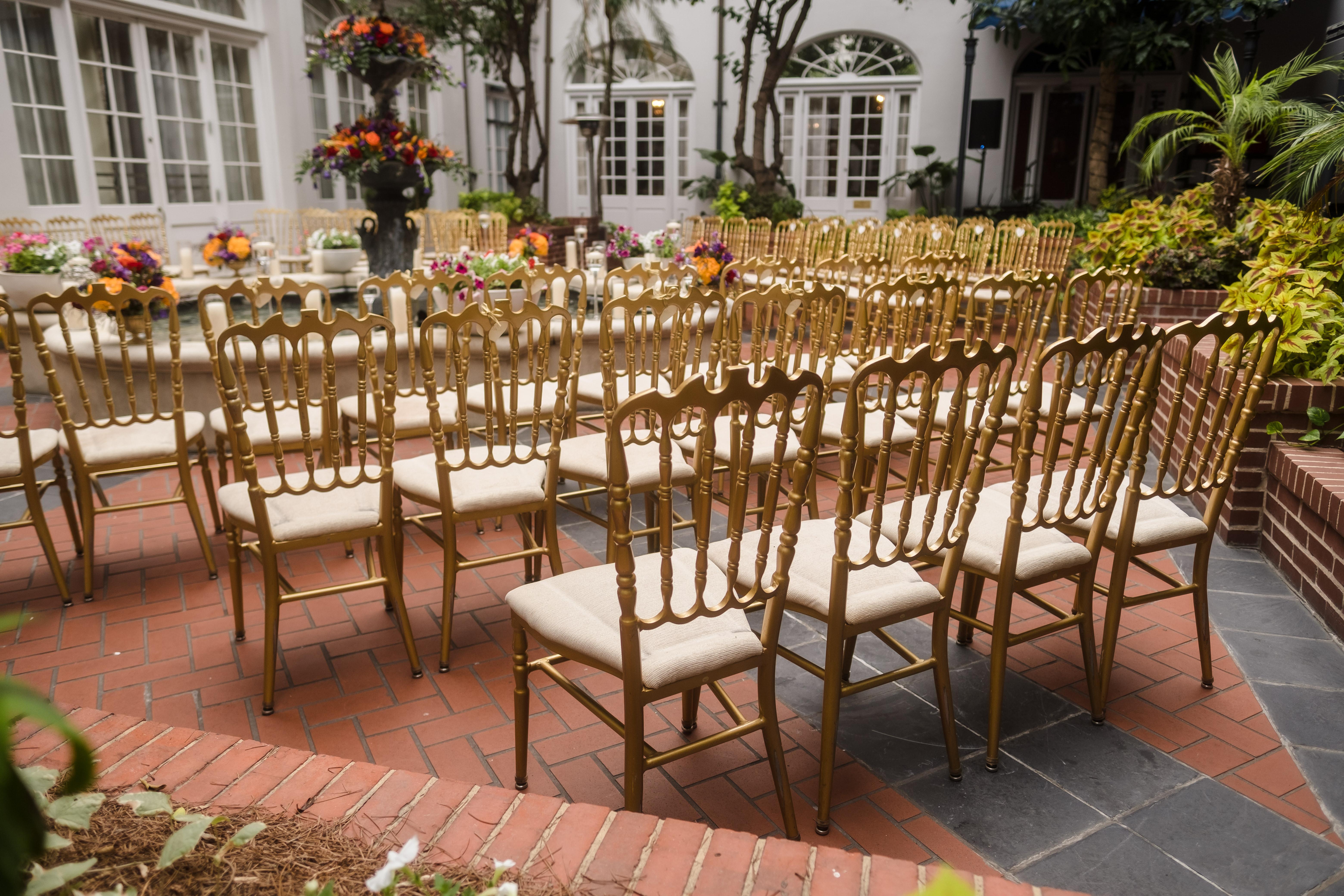 Say “I do” in the heart of the French Quarter with this elegant ceremony package for 50–150 guests. Held in our iconic Courtyard, this experience includes gold Chiavari chairs, sparkling wine toast, private green room, sound system for your officiant, and a reserved weather backup space. Complete your celebration with a signature second-line exit for a truly unforgettable New Orleans moment.