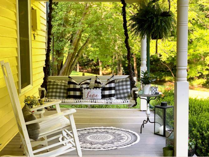 Bridal party dressing room, outdoor kitchen house, complementary use of select decor & furniture.