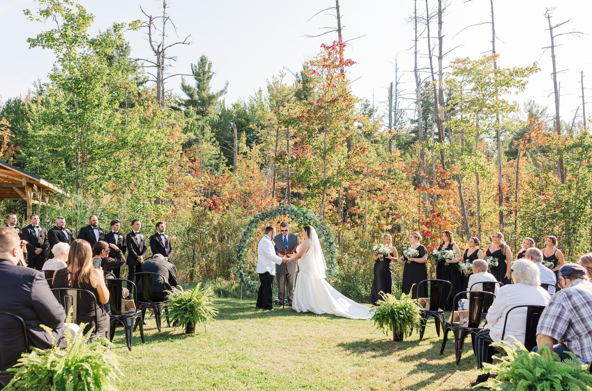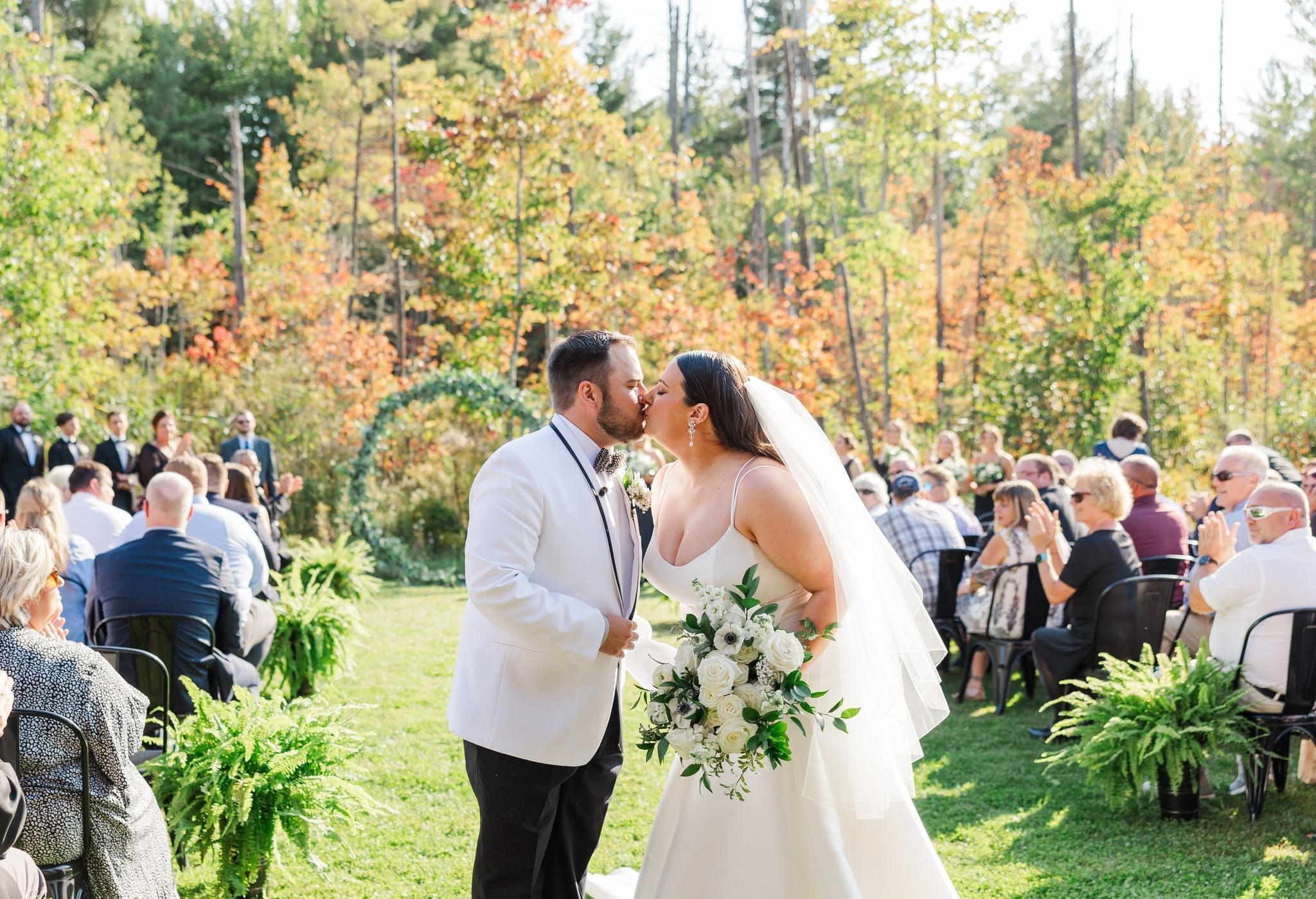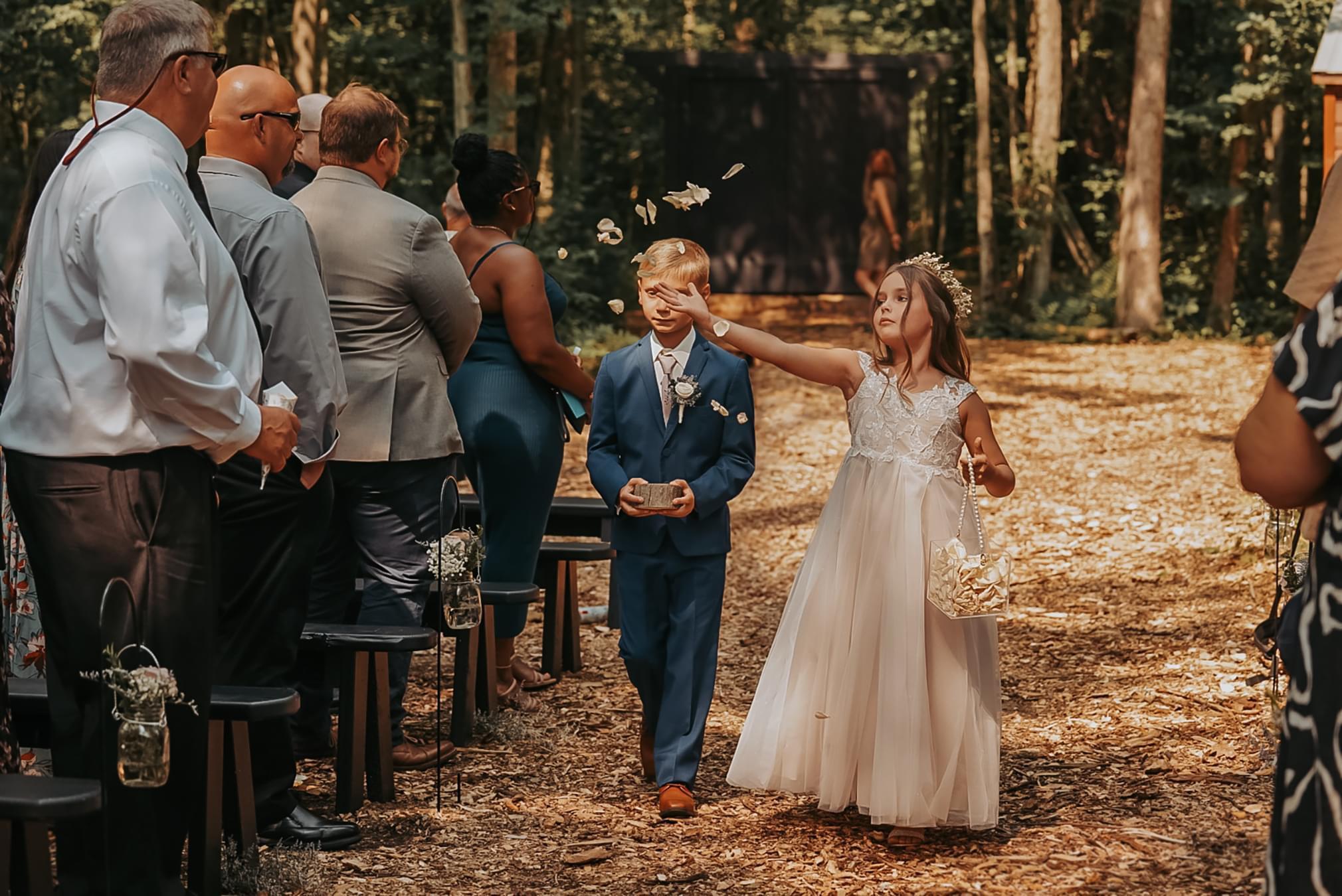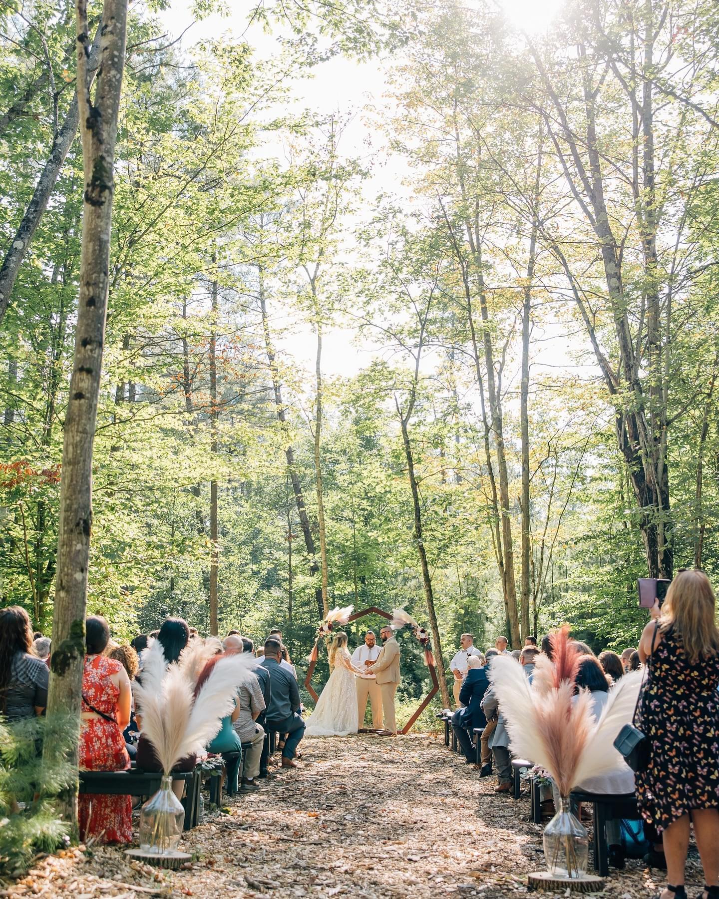 Once guests arrive to the wooded ceremony area it is nothing but pure bliss and nature as the guests await the wedding party, groom and bride.