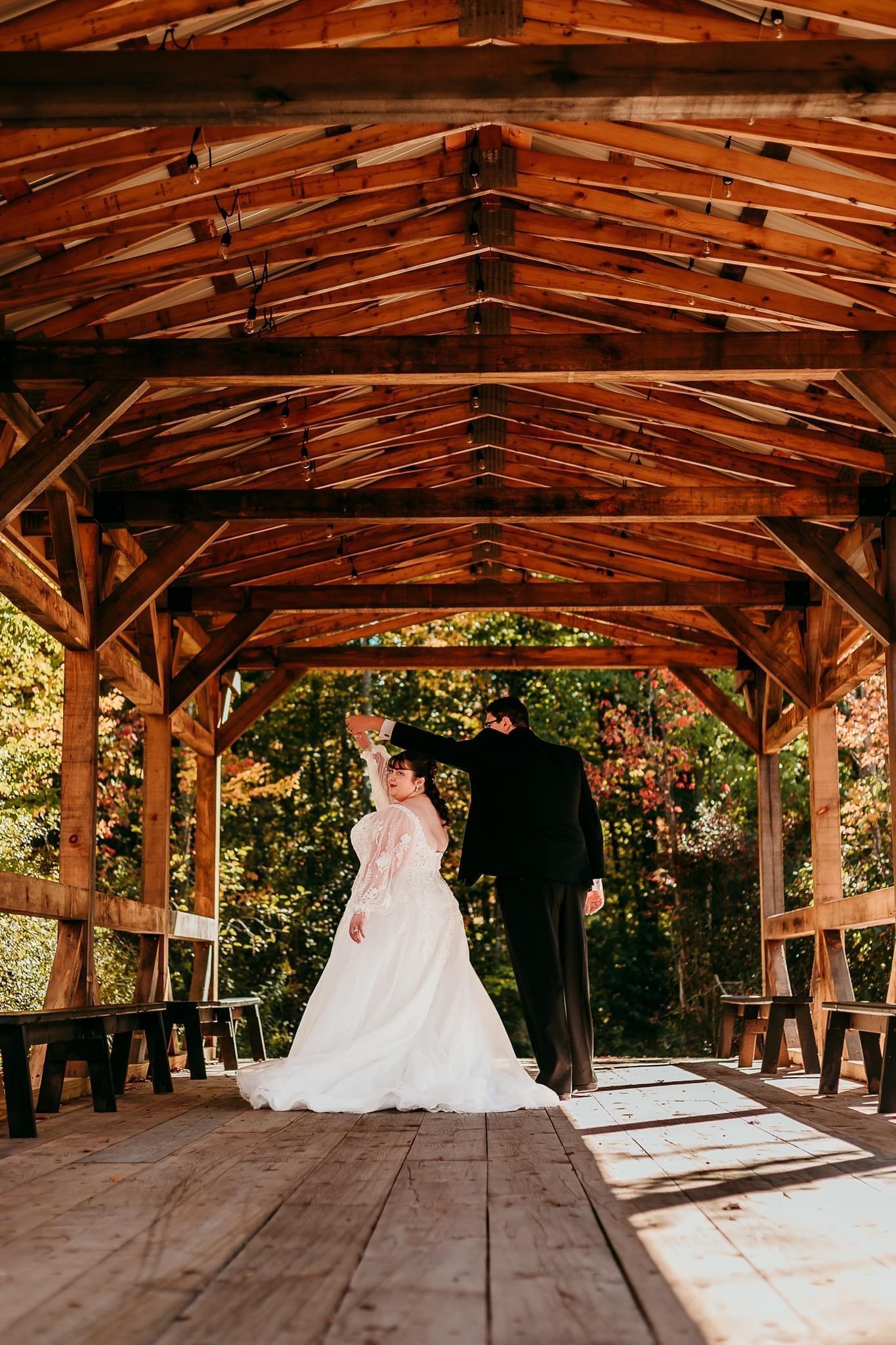 Step into forever beneath the timeless beauty of our 50 ft covered bridge, where every moment feels like a storybook beginning.