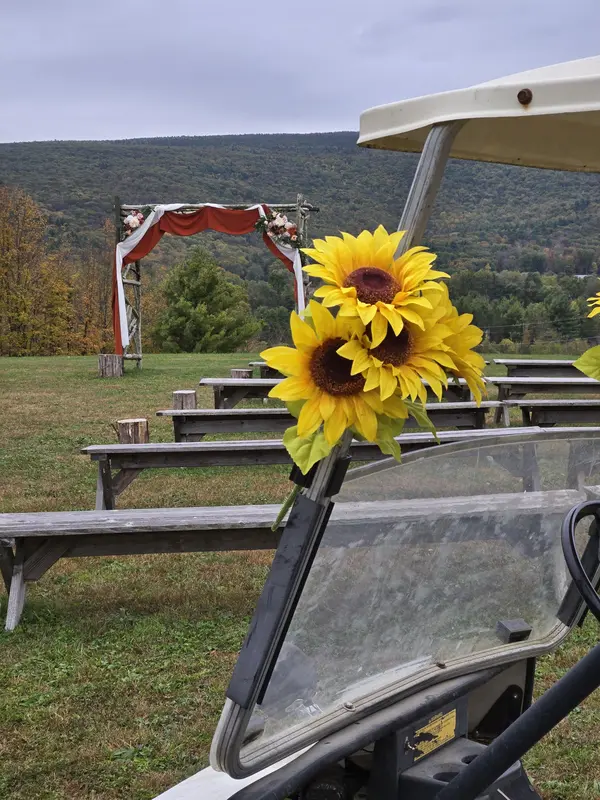 For the ceremony, we have a stunning grassy hilltop with 360-degree mountain views – perfect for a post-ceremony cocktail hour as well. If needed, we have a golf cart for the elderly/ handicapped.
