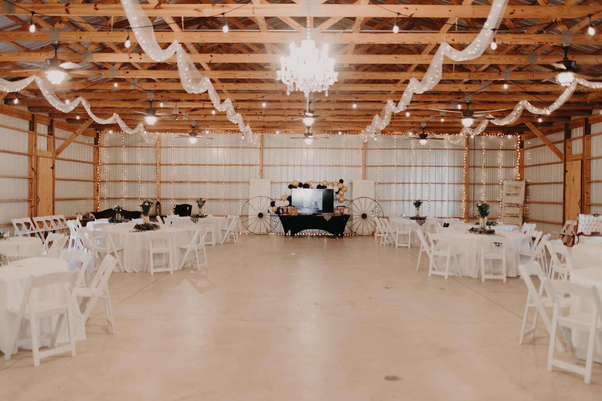 This is our large wedding and event package for events with more than 100 guests. This package includes all amenities listed below, plus table and chair setup for up to 200 guests, seating for bride and groom, and access to the entire venue all day Friday for event setup, decoration, and rehearsal dinner as well as all day access on Saturday for the big day!