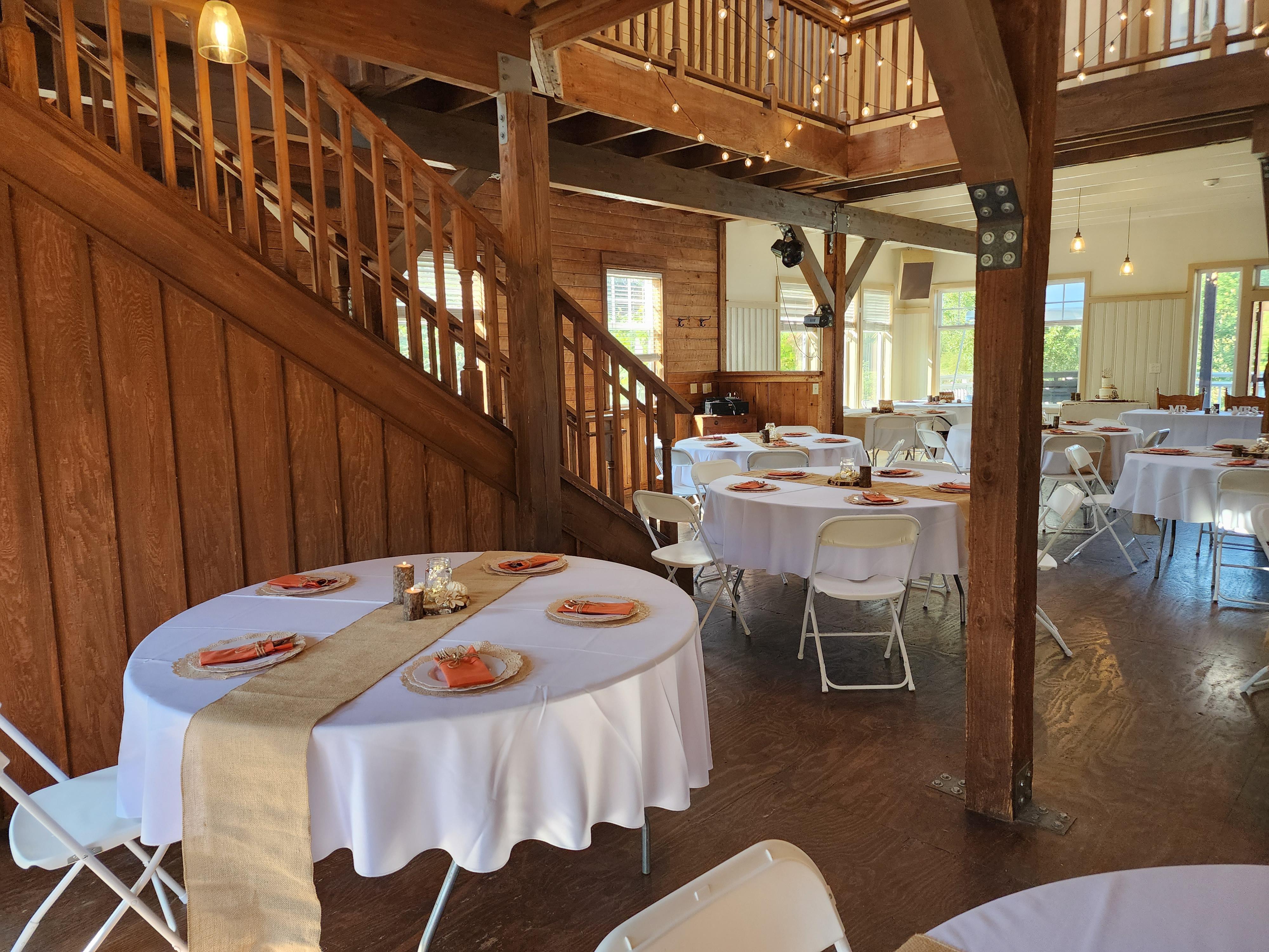 The venue at Sadie Lake has a 3,000 square foot event barn with beautiful views North from the second floor. It features a renovated bridal suite, a groom’s quarters in an adjacent building, a full kitchen, on-site parking, row boats with lake access, outdoor fire pit and more.