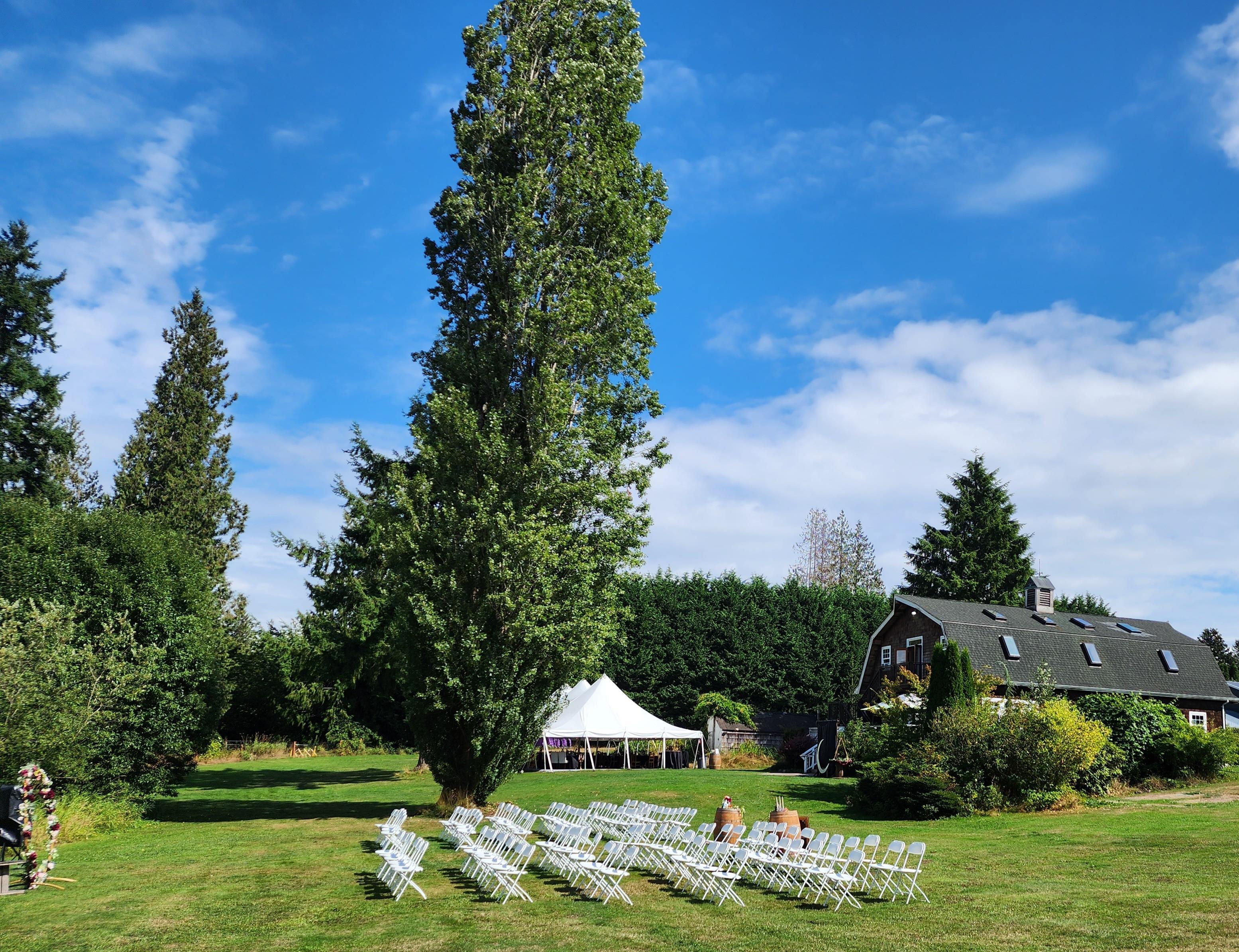 🌹 Sadie Lake is a picture-perfect wedding and event venue in Arlington, Washington located on 18 acres with a stunning private lake. The property is located five minutes from the I-5 near Smoke Point. The indoor Barn Venue is a 3,000 square foot event barn with beautiful views North from the second floor. The outdoor area includes multiple ceremony sites, expansive lakeside areas & wooded trails. Highlights of the venue include a large outdoor tent, 2 get-ready suites, 5 restrooms, full kitchen, on-site parking, row boat & lake access, an outdoor fire pit and more! The property boasts of a well-kept natural setting suitable for casual or formal events. We host weddings & special events all year! The total venue capacity is 300 guests. Event items included with rental include: Chairs, Tables, Arbors, Indoor & Outdoor Sound Systems, Outdoor Games & Extensive Décor!
