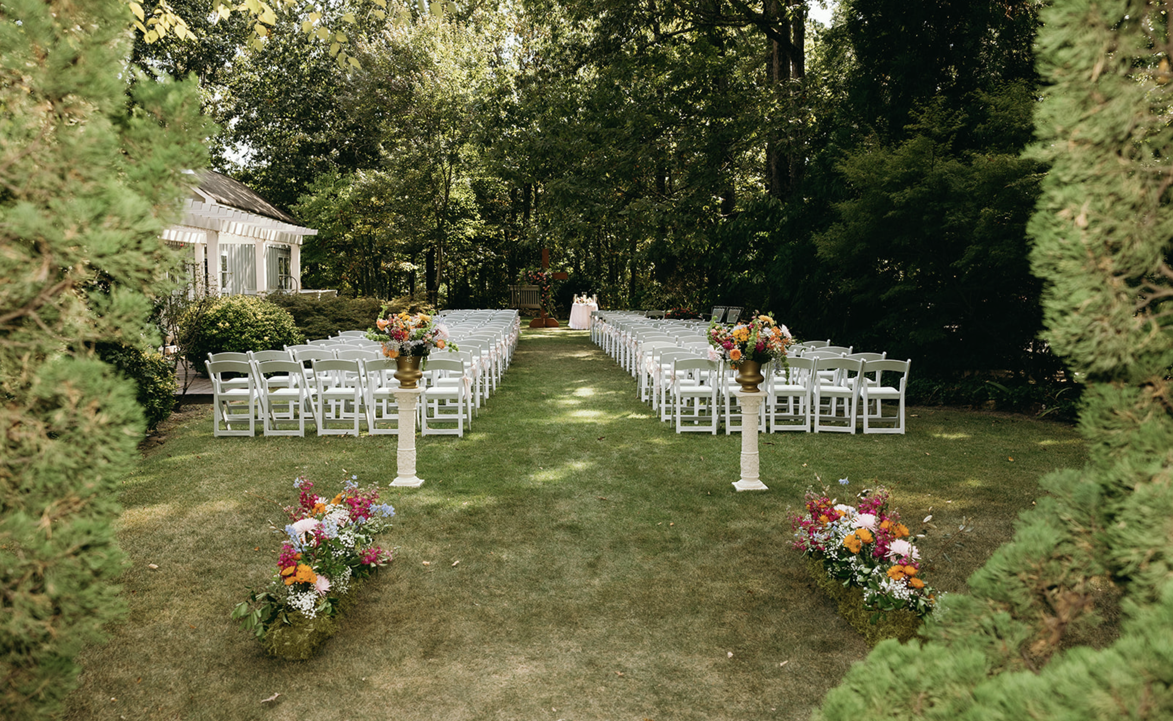 Surrounded by lush greenery and bathed in natural light, it sets the stage for a truly memorable ceremony.