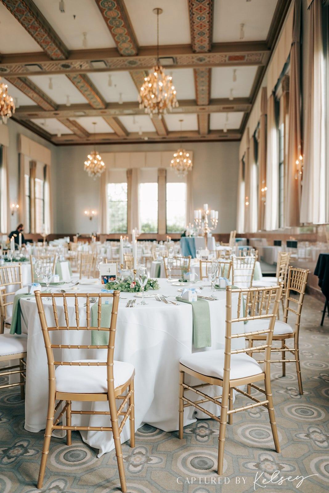 Classic Ballroom, beautifully appointed with chandeliers and large windows allowing in natural light