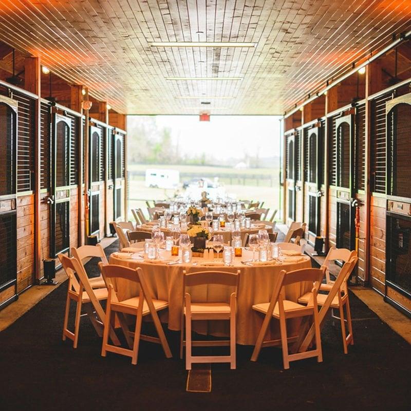Dine outside or in the spacious barn aisles with or without horses in your company, while looking out onto the pastures, nature's woodlands and Blue Ridge Mountains. Accommodates 140 for a dinner and 250 for a cocktail reception.