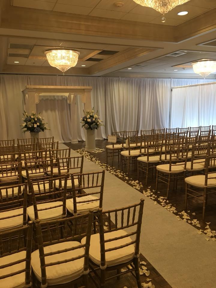- Ceremony Sites: We offer couples several ceremony locations on site. Say “I do” in the ocean air under the grand arch overlooking Salem Harbor. The Ceremony Green on adjacent Pickering Wharf can host up to 220 guests with white garden chairs. Or tie the knot in an elegant indoor ceremony in one of our ballrooms. We’ll handle all the details, from flowers to sound equipment, that will transform the space into your vision for the big day. - Reception Space: Treat your guests to an unforgettable, champagne-popping reception in our majestic Maritime Ballroom. Twirl on our wooden dance floor with dinner and dancing up to 220 people.