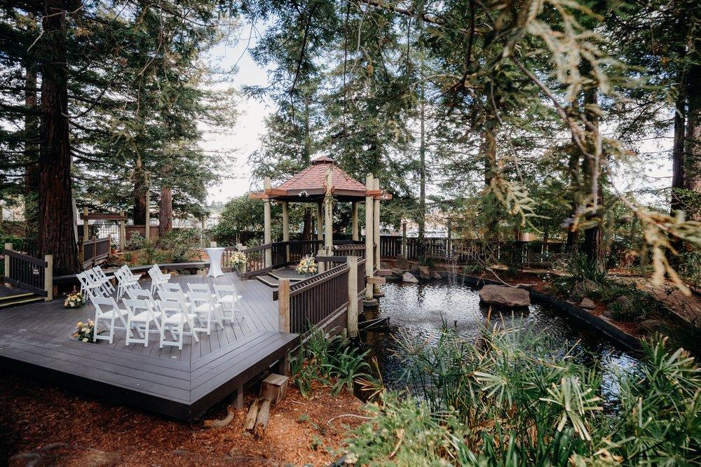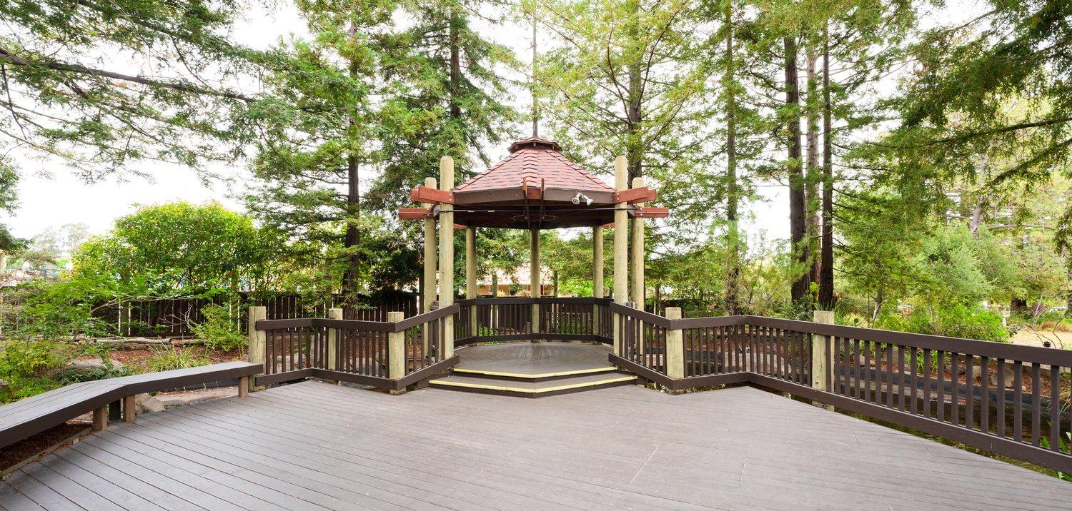 Located at 605 Parkside Way, San Mateo, our venue features a spacious main hall that accommodates up to 115 guests and a smaller room with a capacity of 38, overlooking the lower garden. We provide tables, chairs, and kitchen facilities for event setups. Our picturesque gazebo and patio, overlooking a pond and bubbling waterfall, are perfect for weddings. This versatile location is also ideal for receptions, cocktail parties, meetings, and anniversaries.