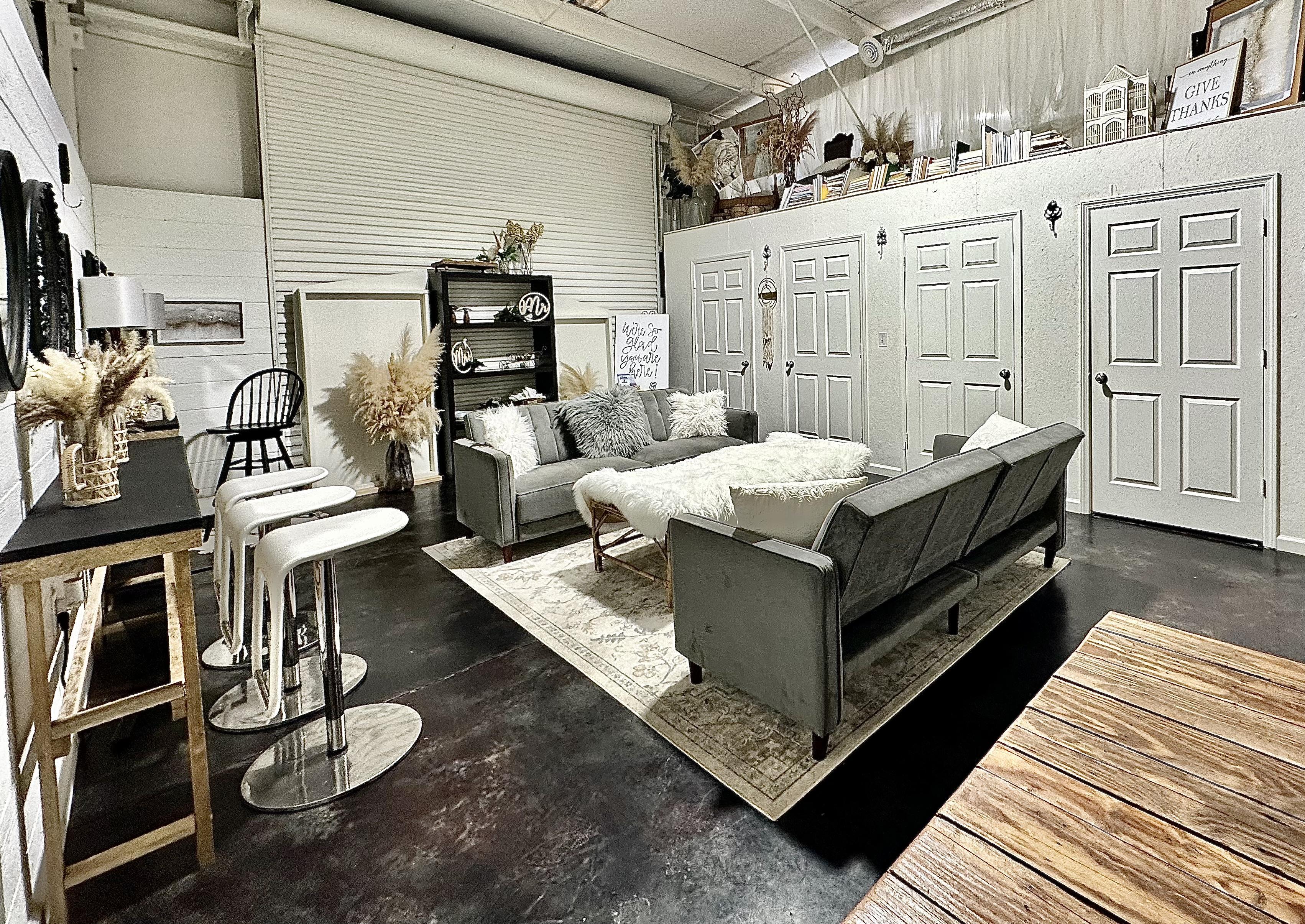 The Studio Warehouse is customizable inside based your ideal setup. The industrial doors can be opened during the warmer months to allow a flow from inside to outside. Perfect for not only wedding details but parties as well!